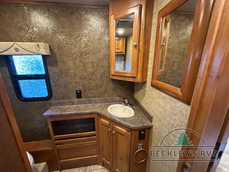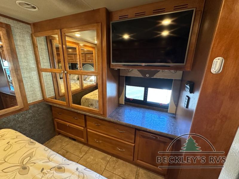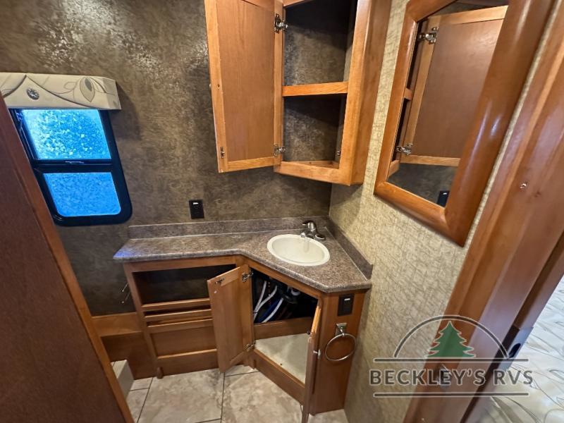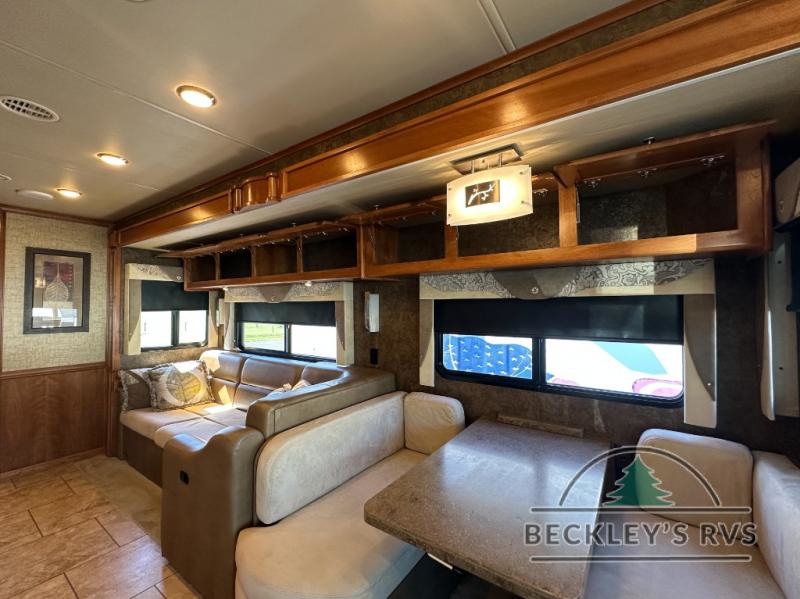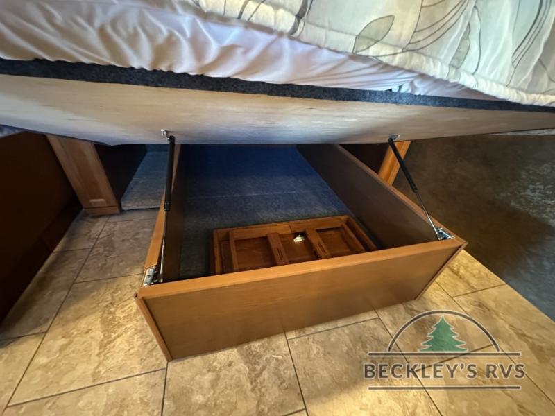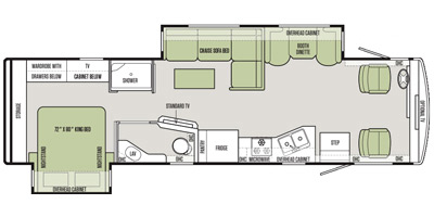 You can opt. for a fireplace below the living room TV, and also for an exterior TV as well. For furniture, you can swap out the chaise sofa sleeper for a recliner with ottoman and sofa sleeper, and the booth dinette can be exchanged for a dinette with computer workstation.