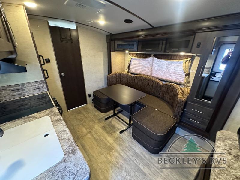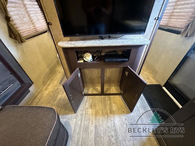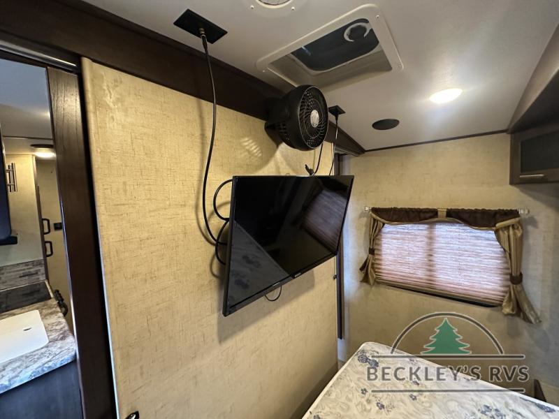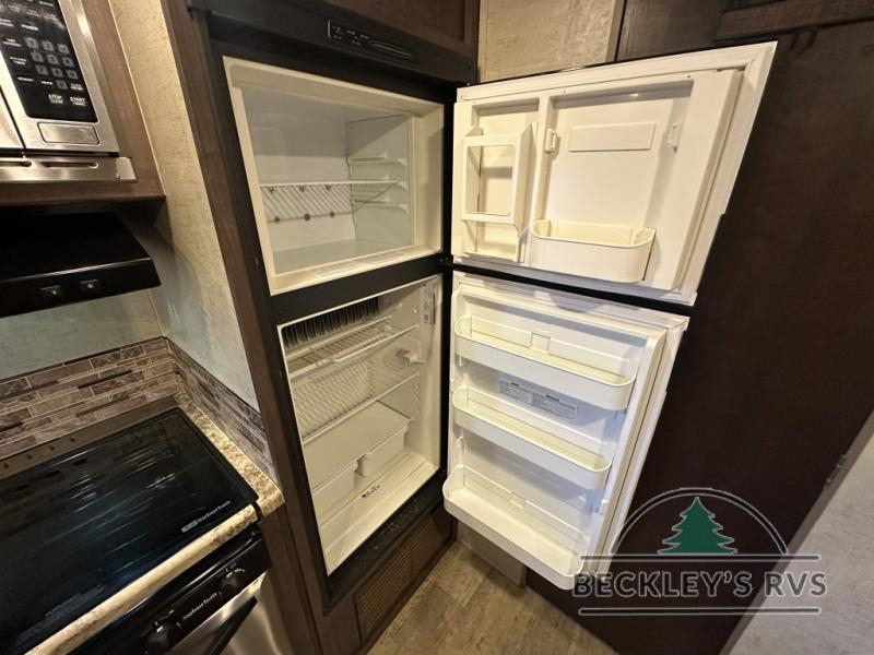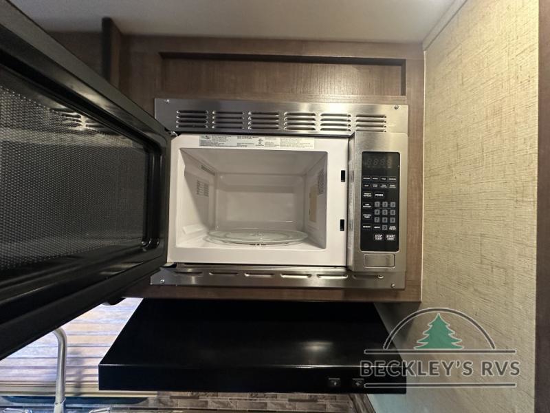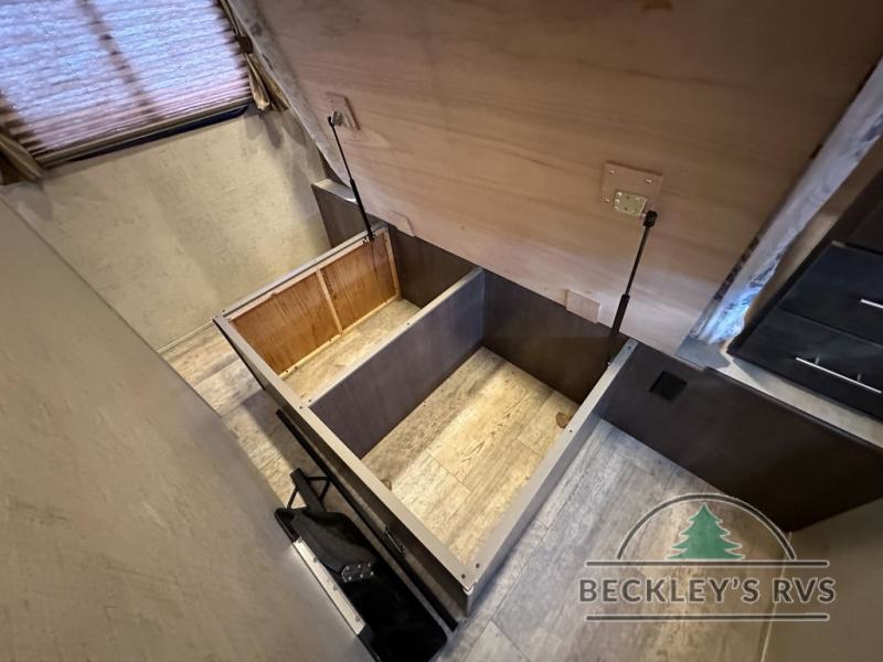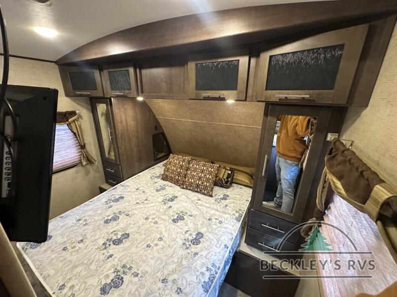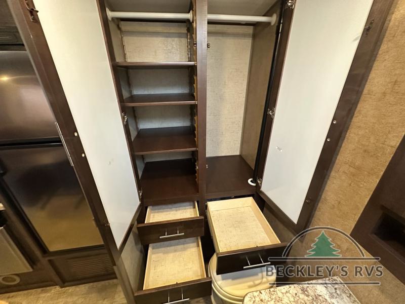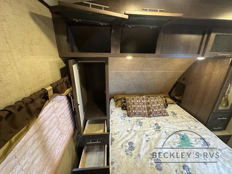 Storage shouldn't be a problem with all of the overhead cabinets throughout the inside of the trailer and the exterior pass thru storage area.