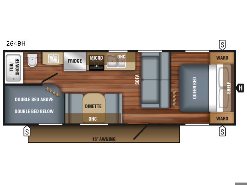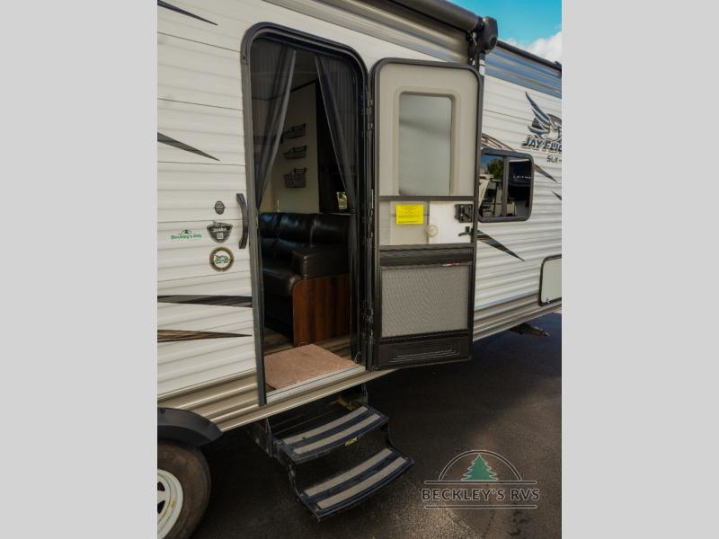 This Jay Flight SLX 264BH travel trailer by Jayco is perfect for a weekend get-a-way. With rear double bunk beds you can easily bring along a few guests!