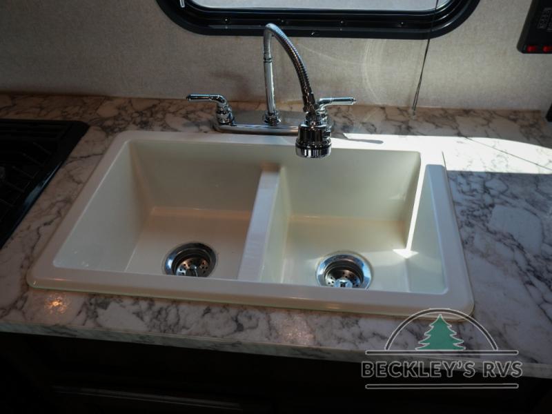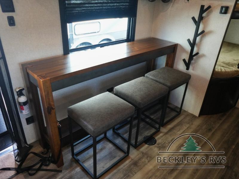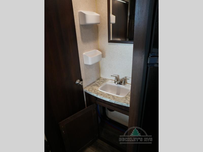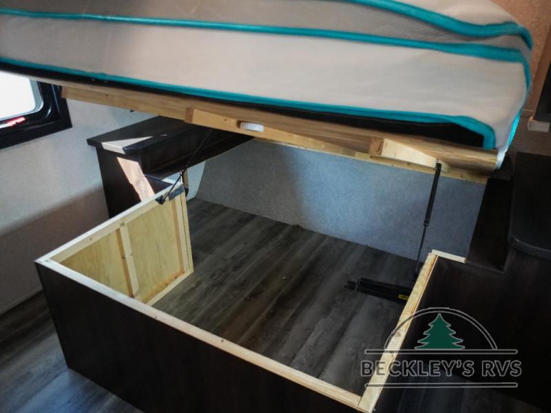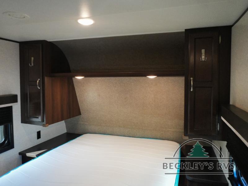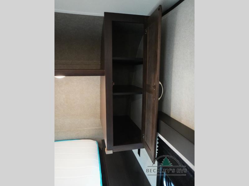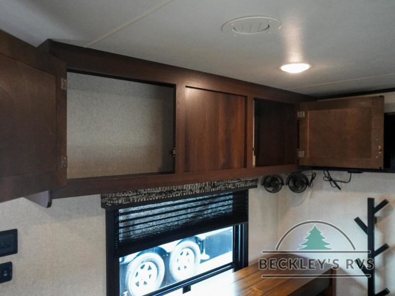 You will find plenty of overhead cabinets throughout the trailer as well as exterior storage, and much more!