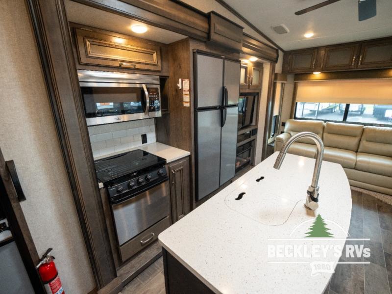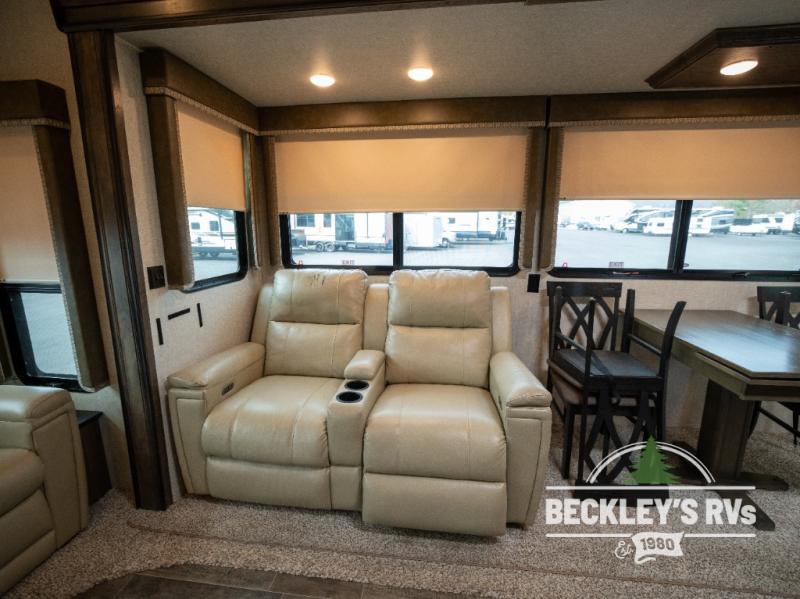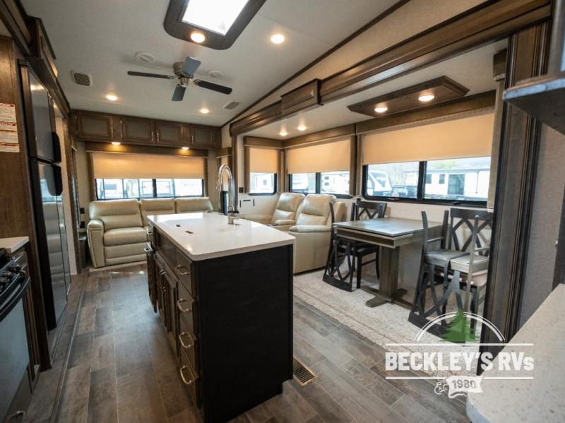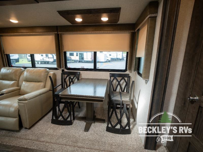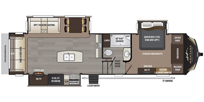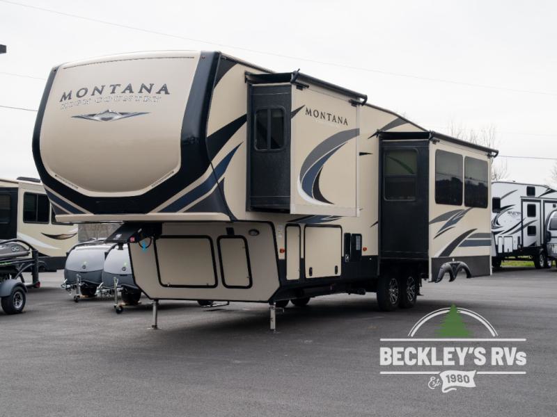When heading out and setting up in a Keystone Montana High Country fifth wheel you will appreciate the Dexter E-Z Lube axles, Max Turn front cap and radius frame with Hitch Vision, and an enormous drop frame pass-through storage compartment to name a few features. Inside you will find luxury and comfort with the 78" tall main slide out with panoramic windows providing beautiful views, more bathroom storage with three drawers in a residential vanity, All-In-One Furrion controls for the TV, radio and fireplace, Beauflor flooring with a 7 year cold cracking warranty, and a residential ceiling fan for natural air movement. It's time to find the premium fifth wheel you can't live without, and start making memories in a Montana High Country today!