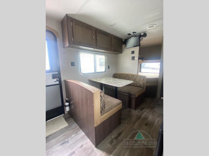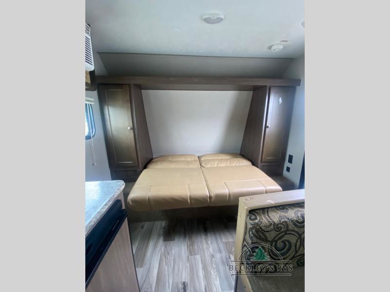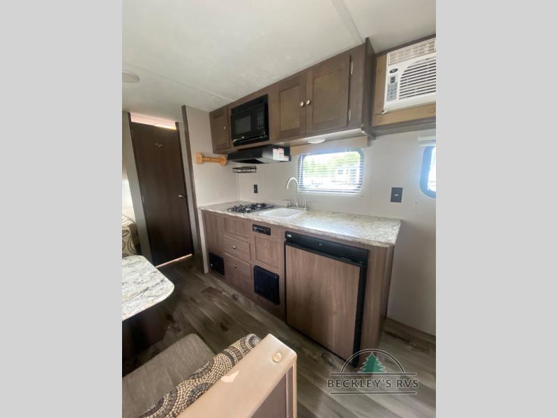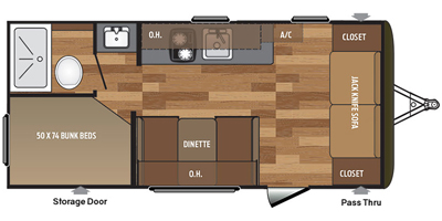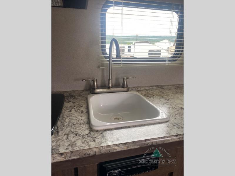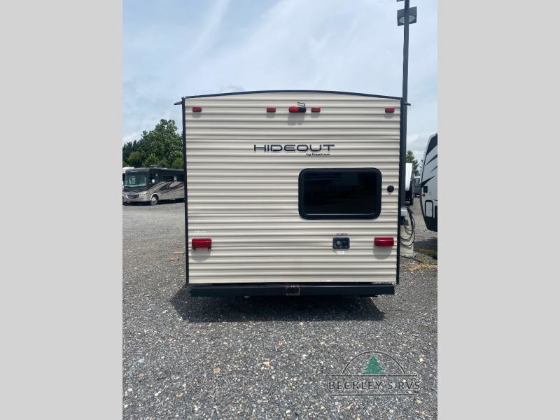 When you own a Keystone Hideout travel trailer, you own an RV that has all of the right features at the right price. The oversized pass-through storage is a truly wonderful amenity because it gives you room to bring along all of your larger luggage items that normally don't fit into your packing plans, like a set of golf clubs or hunting rifles, and you will thoroughly enjoy taking advantage of the interior surround sound speakers as you watch an action-packed movie or listen to your favorite jazz tunes. The more time that you spend in your Hideout travel trailer, the more you will appreciate the 20,000 BTU furnace that has been included to help you keep the interior at the perfect temperature no matter what climate you've traveled to.