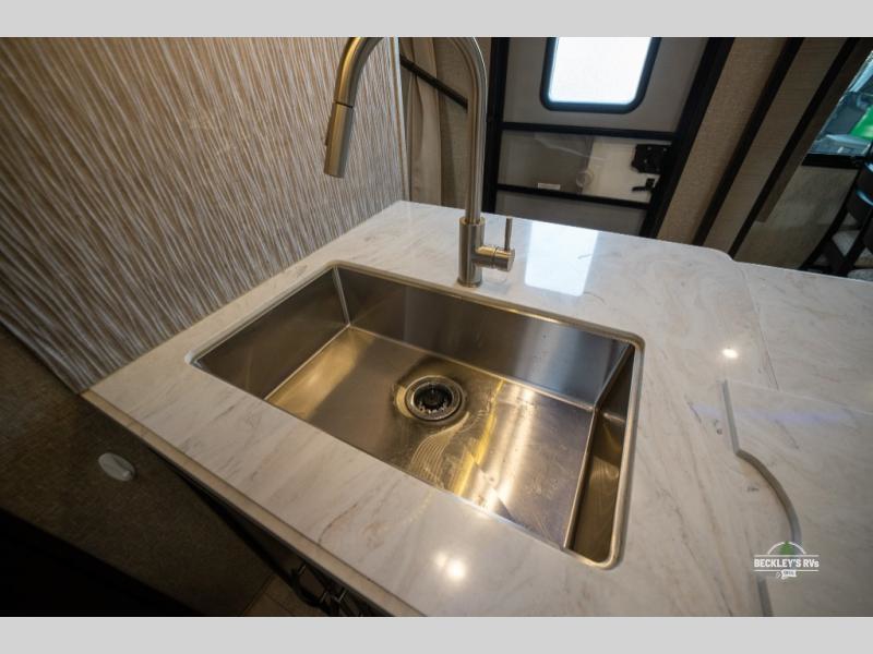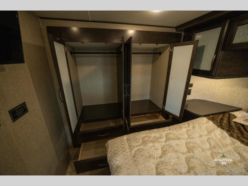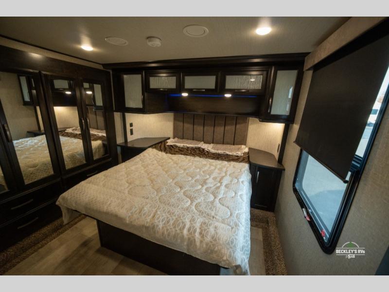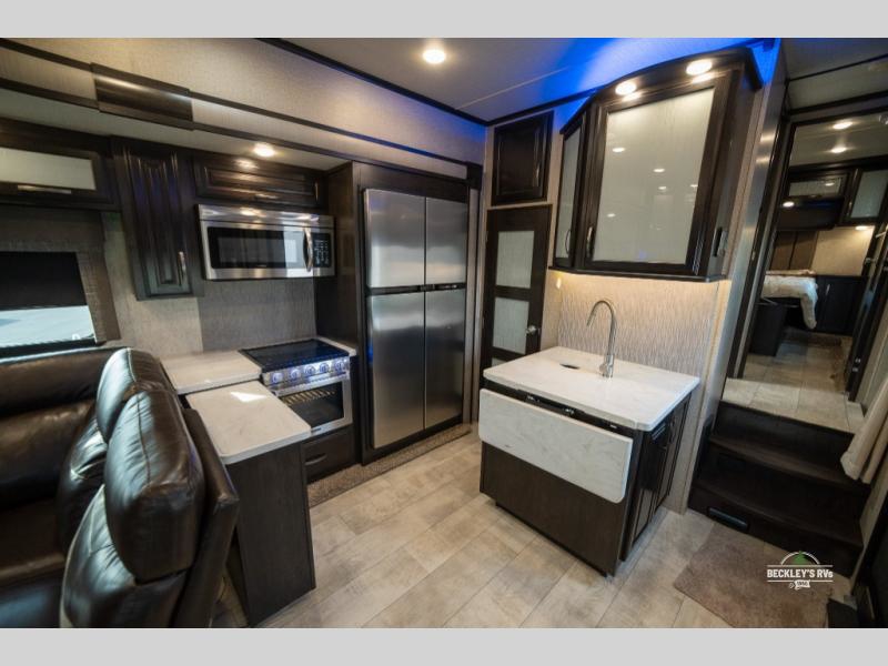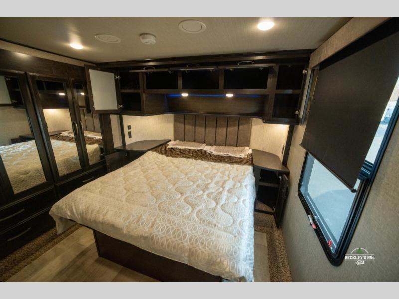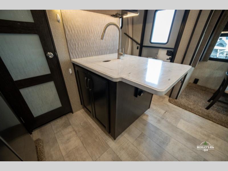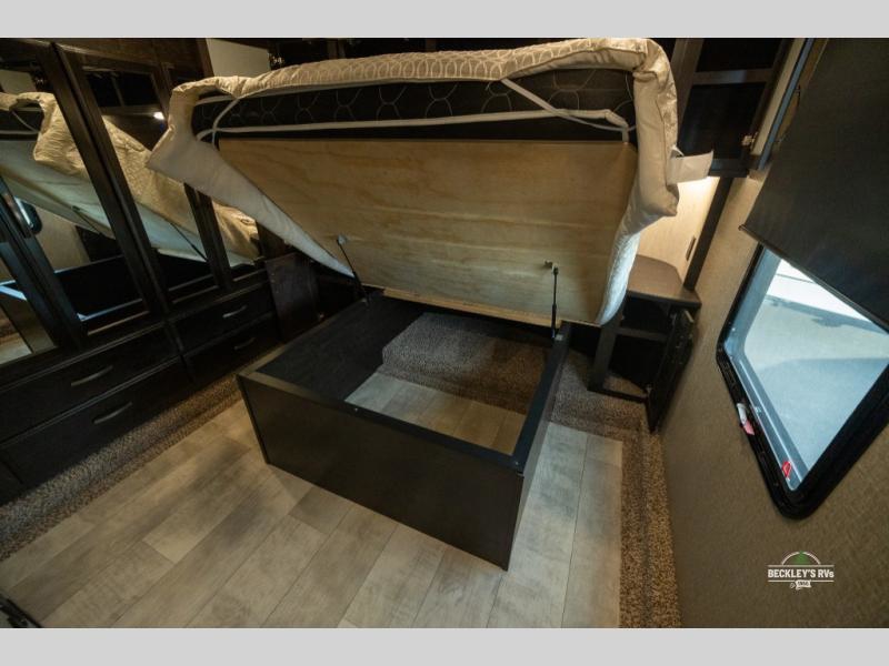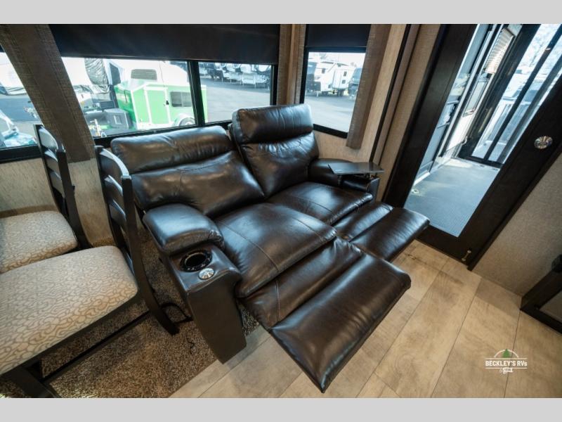 With any Momentum M-Class toy hauler fifth wheel you will enjoy extraordinary living with extreme playtime with the Weather-Tek insulation for four seasons of protection, and a fully enclosed fuel pump station to keep the fun going the whole time.  The Tuff-Ply garage flooring is gas and oil resistant, plus triple insulated.  You will find 2,500 lb. rated flush-mount tie-downs to keep your toys secure while moving down the road. The interior includes a sofa with headrest and removable swivel table, a convection microwave, a central vacuum system with tools and a dust pan, and a satellite/solar roof access channel to mention a few highlights.  Any Grand Design Momentum M-Class allows you to keep your active lifestyle no matter where you decide to stay!