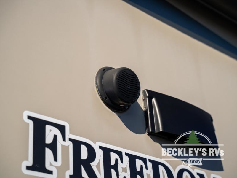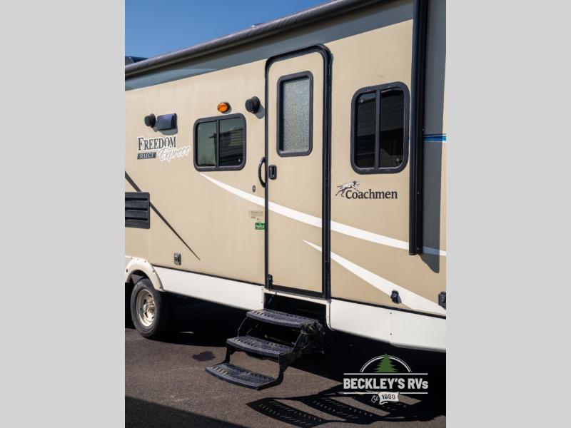 With any Coachmen RV Freedom Express Select model you will enjoy four seasons of traveling with a heated and enclosed underbelly, plus luxury features in a value packed travel trailer. All you need is a mid-size SUV or half-ton truck to start your adventures. Inside you will find congoleum diamond flooring, night shades, a queen mattress with a two-tone bedspread, plus full kitchen and bath amenities including a bathroom skylight for more natural lighting. You will also find plenty of entertainment with the AM/FM/Bluetooth receiver, the two interior and two exterior speakers, and the TV and radio antenna with a booster. Come choose your favorite model today!