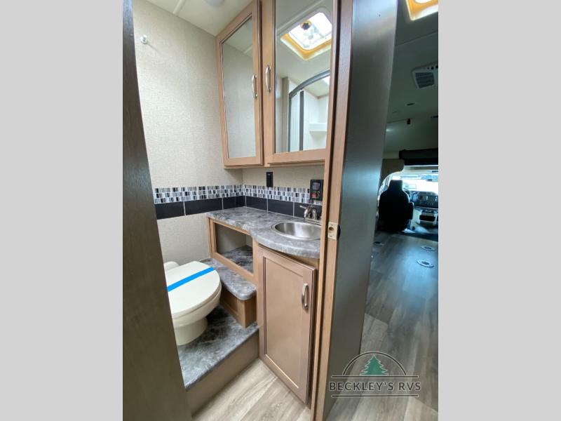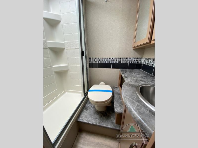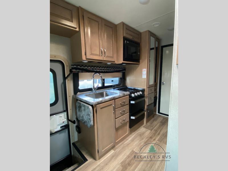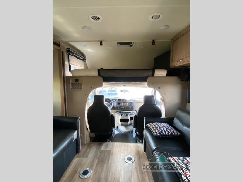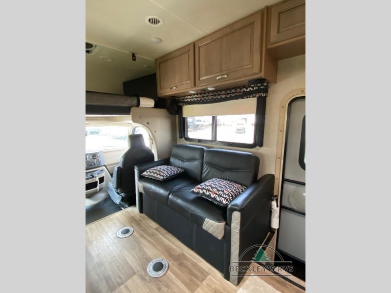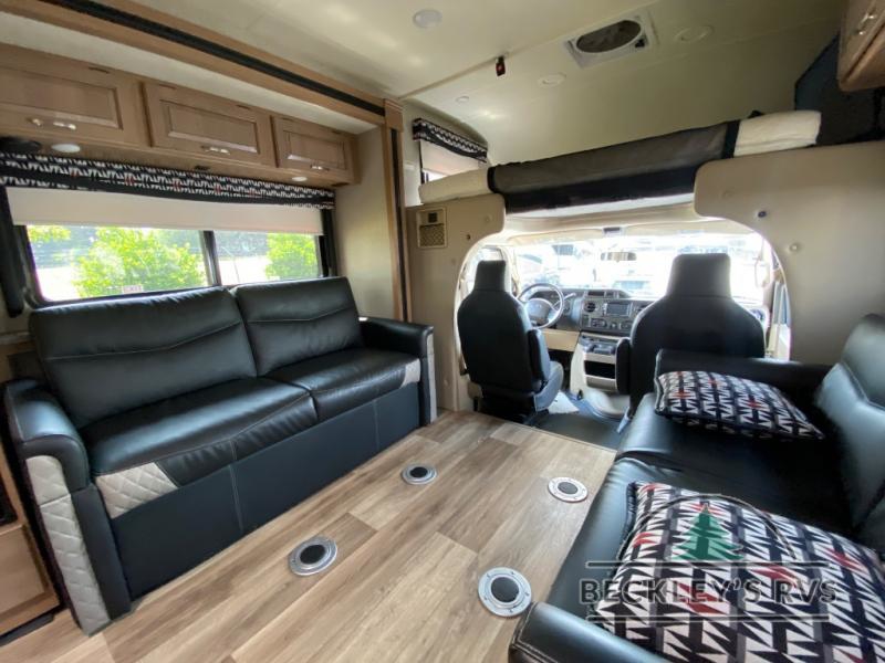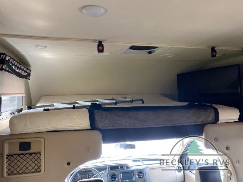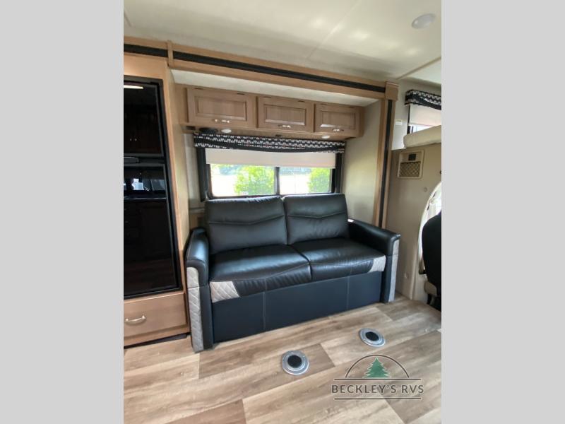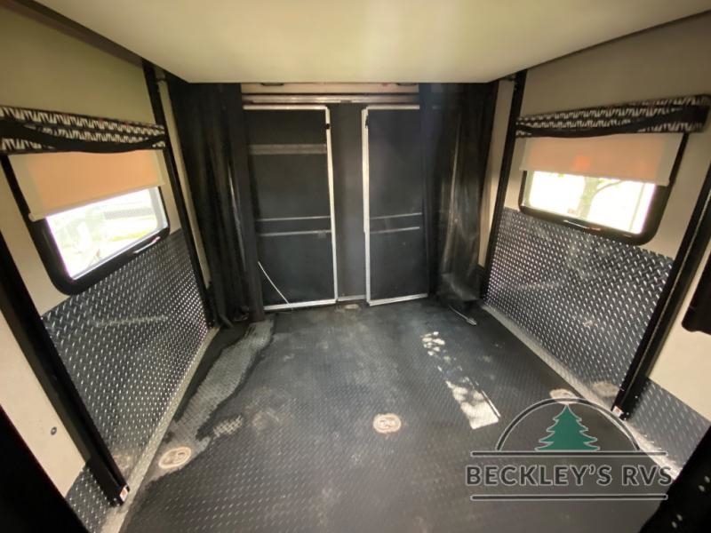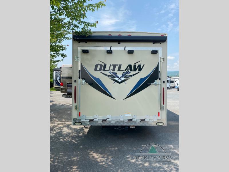 If you are looking for an RV that breaks all of the rules when it comes to traditional motorhomes, then you are looking for this Outlaw Class C gas motorhome toy hauler. This unit amazingly comes standard with four LED TVs - one in the garage, one in the living room, one in the cab, and one outside. The kitchen is no exception when it comes to exceeding expectations with its large window behind the cooktop, double-door gas/electric refrigerator, three-burner gas cooktop, and a pantry to store your favorite snacks. On top of all of that, this model can sleep eight people giving everyone a chance to partake in the fun trip ahead!