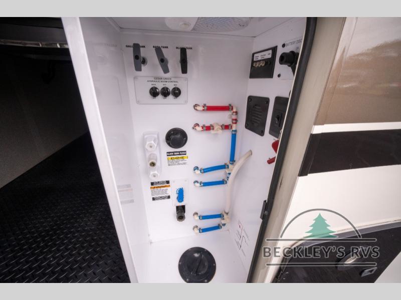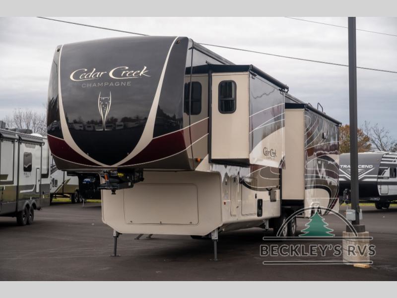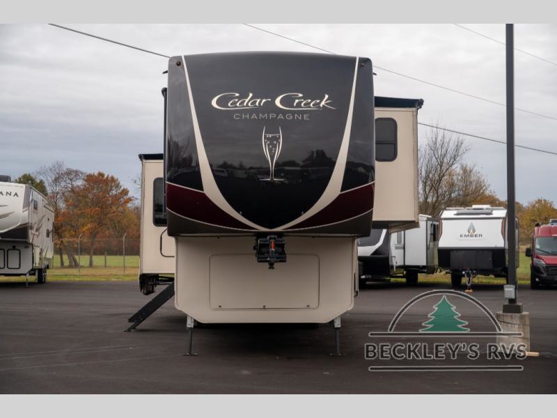As the smart choice for the experienced RV'er, the Cedar Creek Champagne Edition fifth wheel by Forest River delivers luxury all throughout its all-aluminum super structure. From the Nev-R-Adjust® brakes and E-Z Lube® heavy-duty axles to the automatic 6-point hydraulic leveling system and keyless entry, the Cedar Creek Champagne Edition will never disappoint! Residential amenities are located throughout the interior, and one exceptional feature that will make vacationing in a Cedar Creek even more convenient is the central vacuum system with an extra port in the front storage compartment.