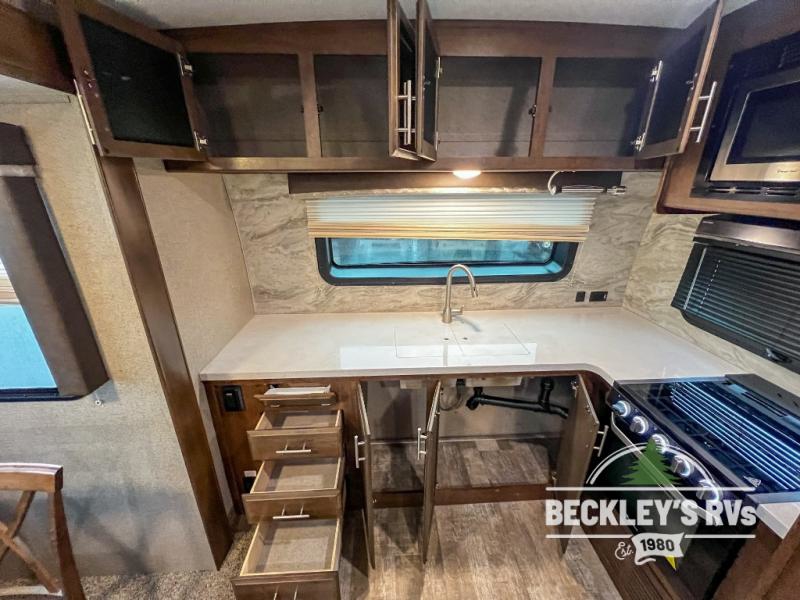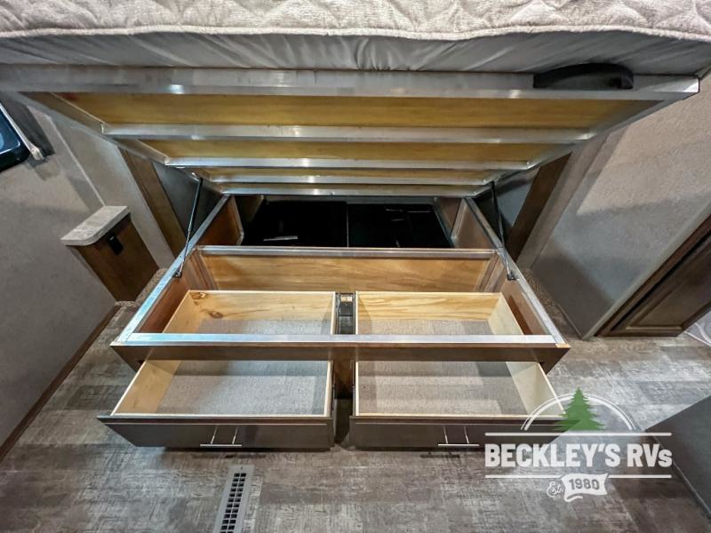 With each Rockford Signature Ultra Lite travel trailer or fifth wheel by Forest River, you will enjoy beautiful Slatewood interior, upgraded cabinetry hardware, and solid surface countertops to make it feel more like home. All of your entertainment needs will be meet with an LCD TV that includes an upgraded sound bar system and multi-directional antenna and the multi zone stereo will keep the party going. These units are constructed with a fully aluminum frame and an enclosed underbelly to provide a sturdy unit made to last. You'll also find plenty of storage throughout these models, including slam latch baggage doors and magnetic door holds so you can easily pack all your camping essentials.