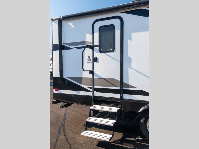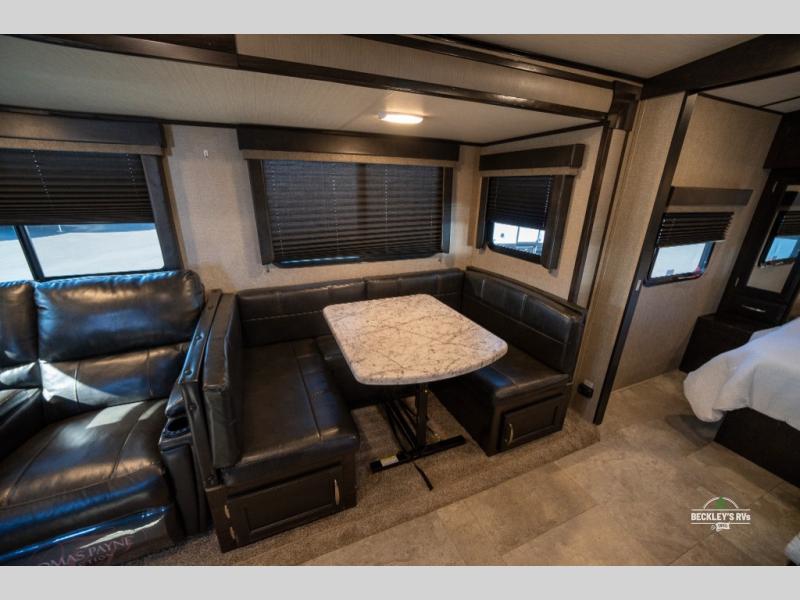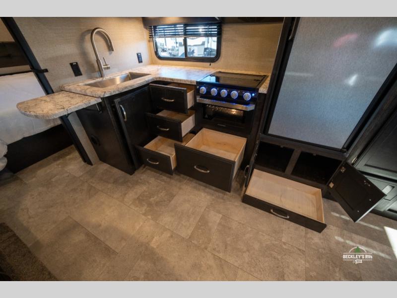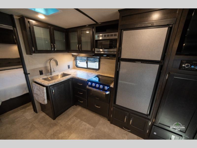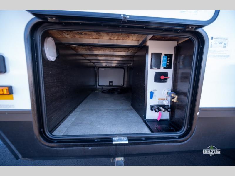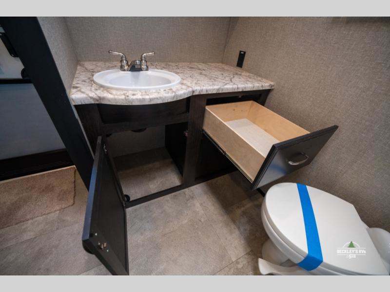 Imagine yourself placing your tennis shoes in the shoe storage before relaxing on a tri-fold sofa, or eating a snack at the U-shaped dinette. You can even fill your dog's water bowl in the pet dish drawer below the refrigerator.  This travel trailer has the perfect layout for a couple or a family of five to six.  The kitchen and bath amenities allow you to make meals, and skip the public facilities.  When it is time to retire for the evening you can retreat to the front bedroom with a space savings sliding door.  Now imagine you own this trailer and how many places you have already visited.