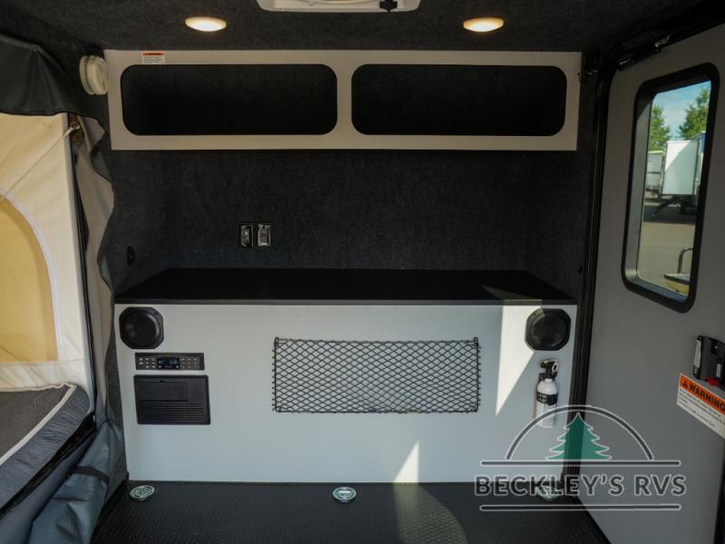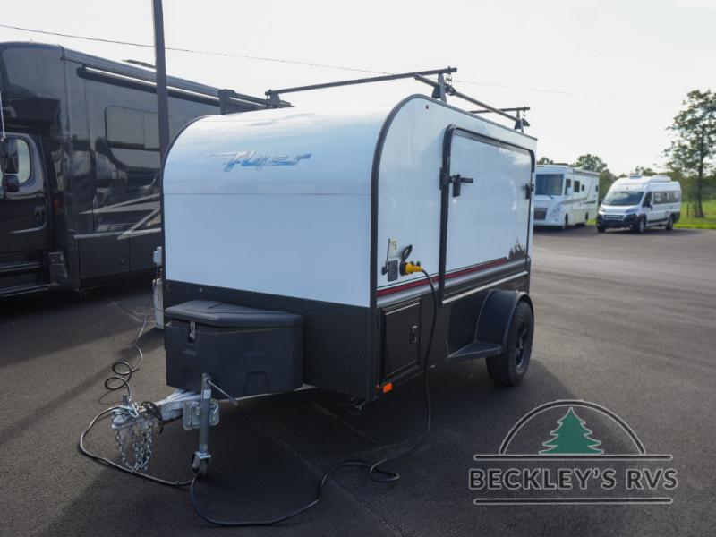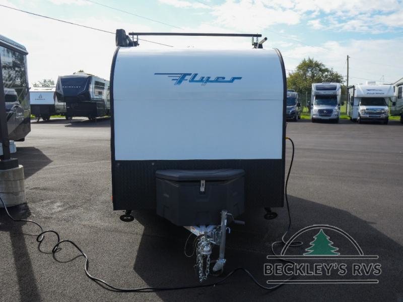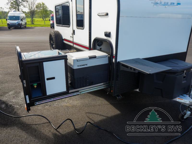 Load up your off-road toys in this Flyer Explore micro-lite toy hauler with six tie-down rings to keep everything secure while moving down the road. Once you have arrived at your destination, the rear ramp door will make loading and unloading super easy, and you have the ability to expand this Flyer model to fit your needs. The optional tip-out bed on either side of the trailer provides a comfortable place to sleep and increases your interior footprint. If you choose the optional kitchen slide out with 12V refrigerator, you can easily whip up meals and snacks in the great outdoors!