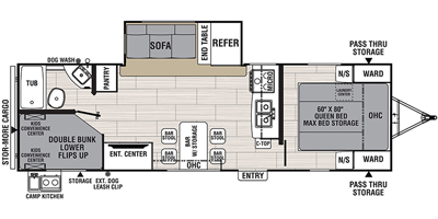 This family-friendly Spirit Ultra Lite travel trailer will make the kids happy thanks to the double-size bunk beds and two kids' convenience centers to call their own! You will have your own privacy in the front bedroom that has a walk-around queen bed with storage underneath as well as on the sides. Once you reach your destination, you can open up the 20' power awning and make lunch on the outside camp kitchen. Inside, you will love to play a game at the bar that includes four bar stools and convenient storage underneath, and you can take a load off on the sofa with end table for your drinks.