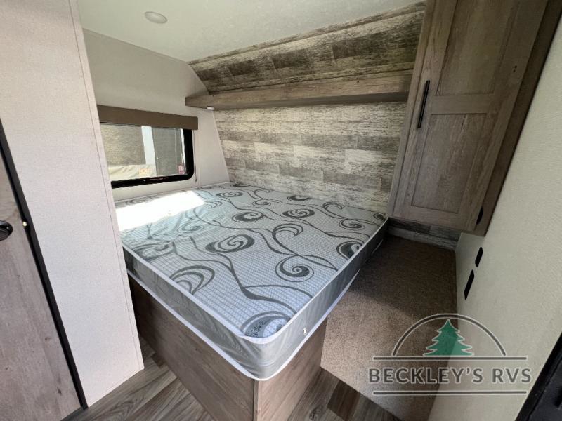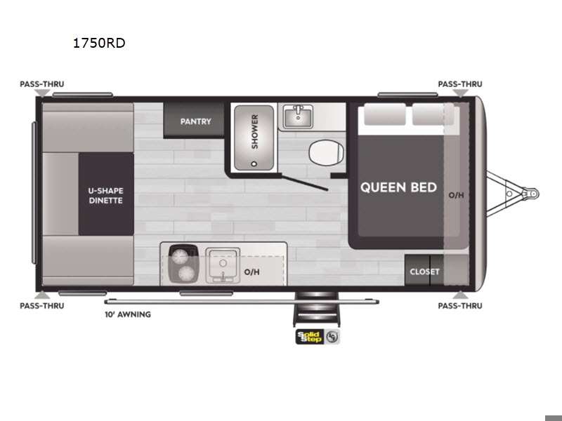 Come enjoy each camping trip in this single axle Springdale Mini 1750RD travel trailer. You can enjoy your meals at the U-shaped dinette, and in the evenings plan to visit or play a card game here. Along the front of this model there is a queen bed with bedside outlets, a closet at the foot of the bed to hang your clothes, and overhead cabinets above the bed. You can bring along all of your favorite snacks and easily store them inside the large pantry, plus you can easily whip up a meal with the two burner range.