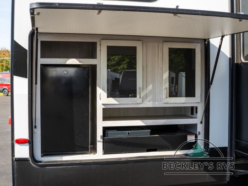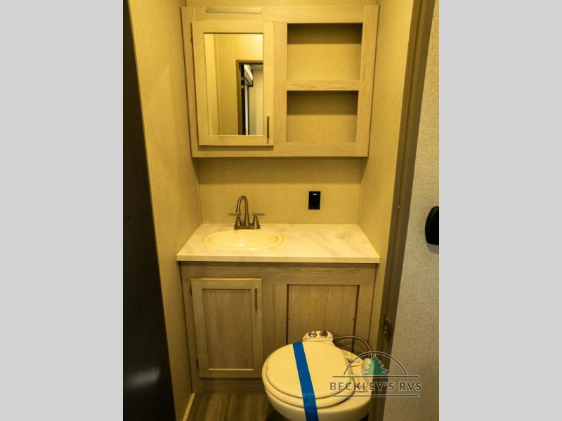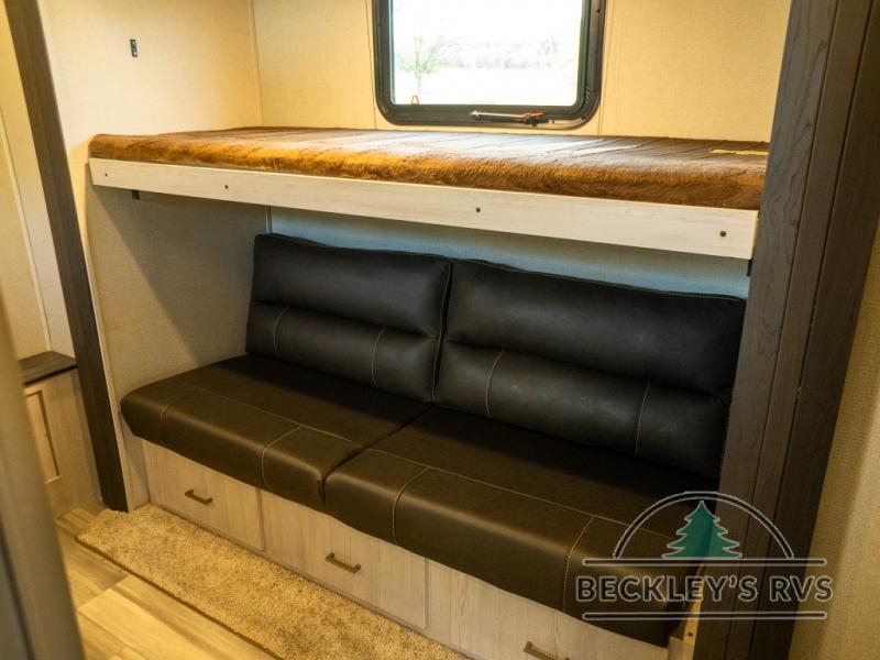 Just imagine this Sprinter fifth wheel loaded up for the three-day weekend that starts now! You and your family or friends can safely drive to the state park to meet your camping friends. Quickly set up the triple slides for more interior room when you aren't fishing, hiking, or walking around the campgrounds. Your children or friends will love having privacy in the bunkhouse and their own bunk or sleeper sofa to relax and unwind on after a fun-filled day, plus they even have a half bath to themselves. You can retire to your own master suite with a residential queen-size bed and a private entry door into the dual-entry bathroom. The cook will love all the counter space in the kitchen, and everyone will appreciate all the floor space throughout. You can even cook outdoors, and the premium outdoor convenience center will be a dream.