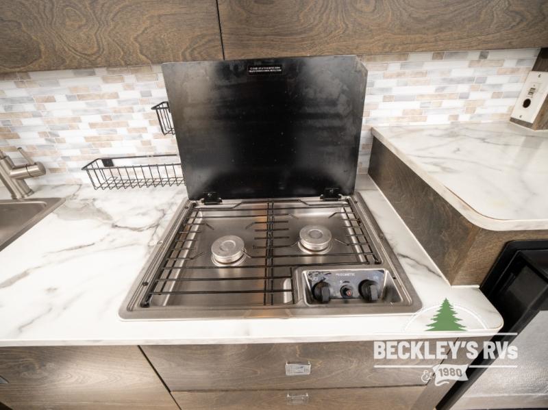 If you want an innovative trailer that will take you on your best camping trip then you need one of these TAB 320 teardrop trailers by nüCamp RV! The TAB 320 is one of the most unique trailers on the market with its unconventional style, but it will surprise you with its modern and luxuriously crafted design. From the Alde® central heat and hot water system, and real Ohio Amish rich wood cabinetry to the external Lagun bracket and central air conditioning, each one of these TAB 320 campers will have you wondering why you didn't check them out sooner. And if you enjoy taking the road less traveled, then you will certainly want to consider adding on the Boondock Lite or Sofitel package. These optional features, like the aggressive off-road tires in the Boondock package and the polished aluminum sidewalls in the Sofitel package, give you a leg up as you adventure throughout any rugged terrain.