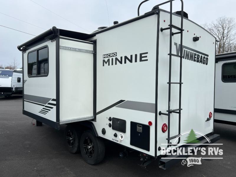 Start out on your boundless journey in one of these Winnebago Industries Towables Micro Minnie travel trailers! Towing is made simple with the 7' width to keep your Micro Minnie in your rear-view mirror and can turn at a snap. They don't lack in features although they are compact in size. The spacious galley with the sink, the refrigerator, the cooktop, and even a microwave allow you to cook without compromise. You will not only enjoy entertainment indoors with the LED TV, the AV system, the WiFi prep, and the wireless cell phone charger, but also outdoors with the patio speakers and the power awning with LED lighting. Each model comes with flexible exterior storage to make packing quick and easy. The extreme weather foil wrapping, the NXG engineered chassis, and the TPO roof ensures you will have years of fun with one of these!