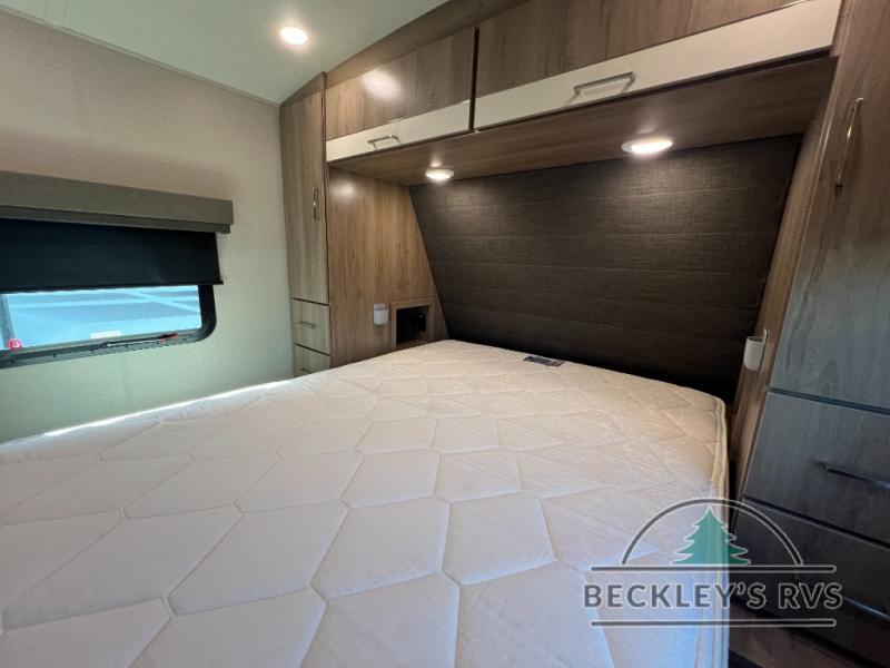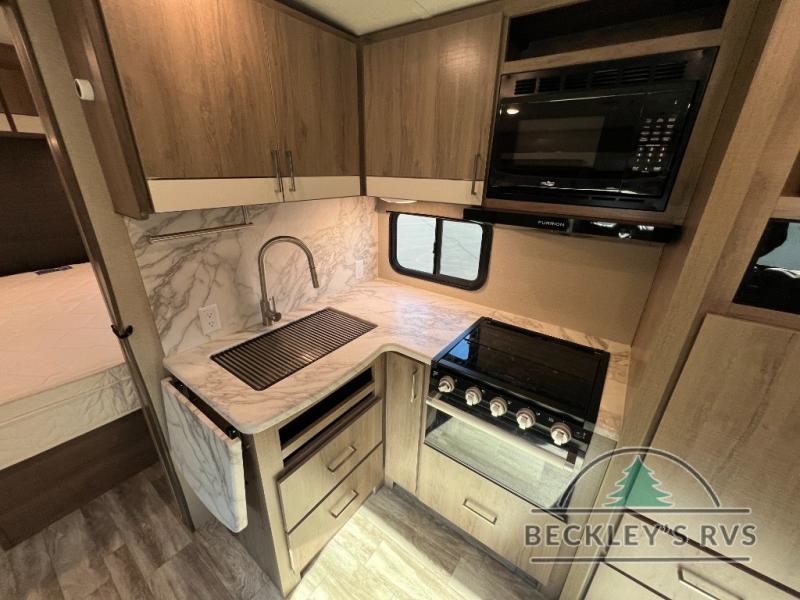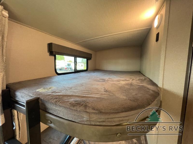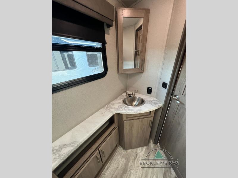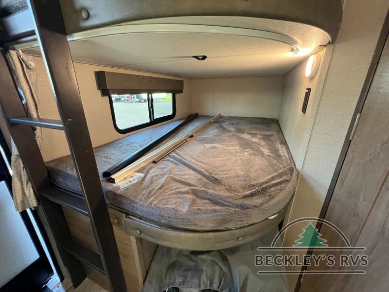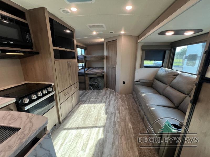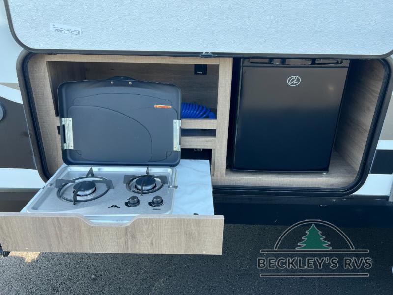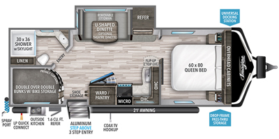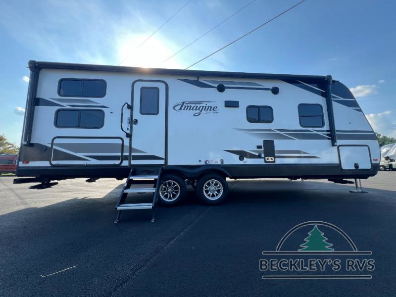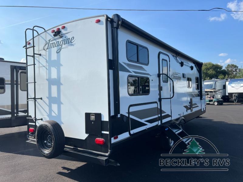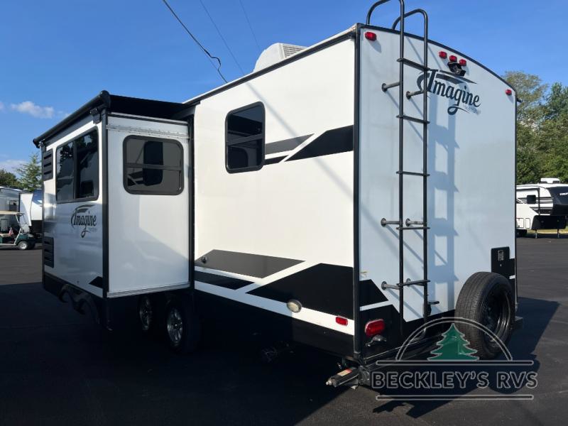 Just imagine what you can do with this Imagine travel trailer! You'll have a U-shaped dinette with removable ottoman so that you can relax in true comfort. The kitchen sits across from the dinette and includes a flip-up countertop extension for more prep space. The private bedroom includes a 60" x 80" bed with overhead cabinets and closets on either side of the bed, and the 47" x 76" bunks have privacy curtains that you can close to create a private sleeping area. You'll love having your own bathroom with 30" x 36" shower and skylight so that you don't have to wait in line to use the campsite's facilities, and you can head outside anytime to create a delicious meal at the outdoor kitchen.