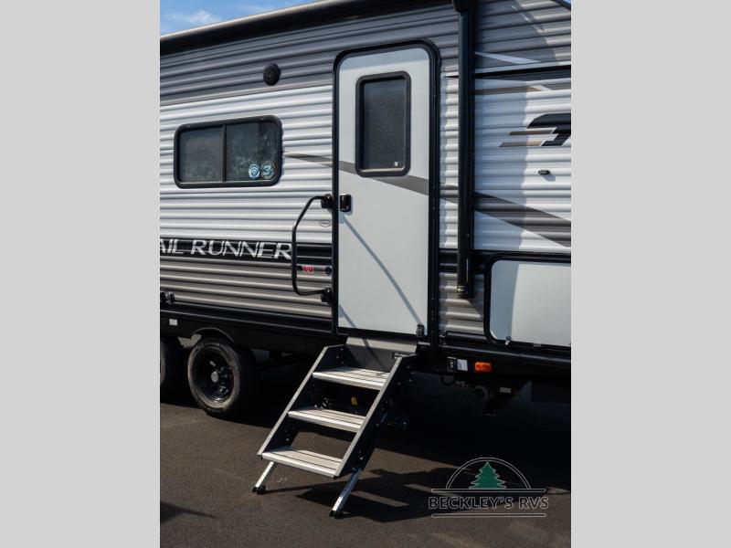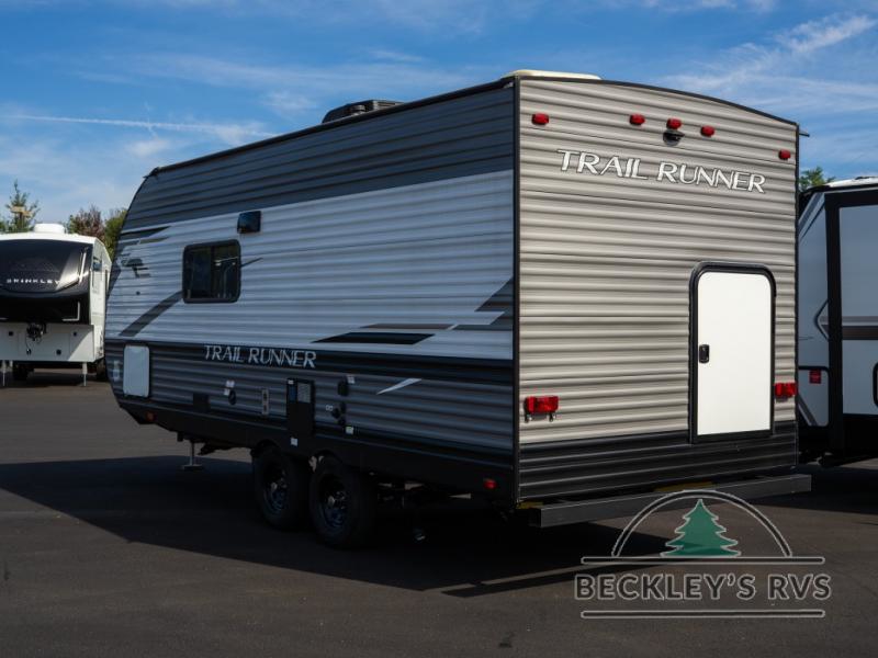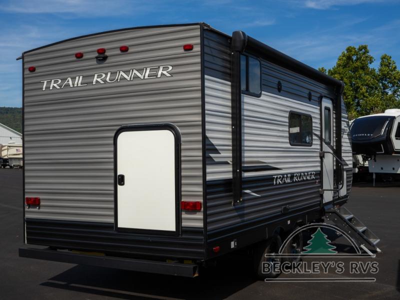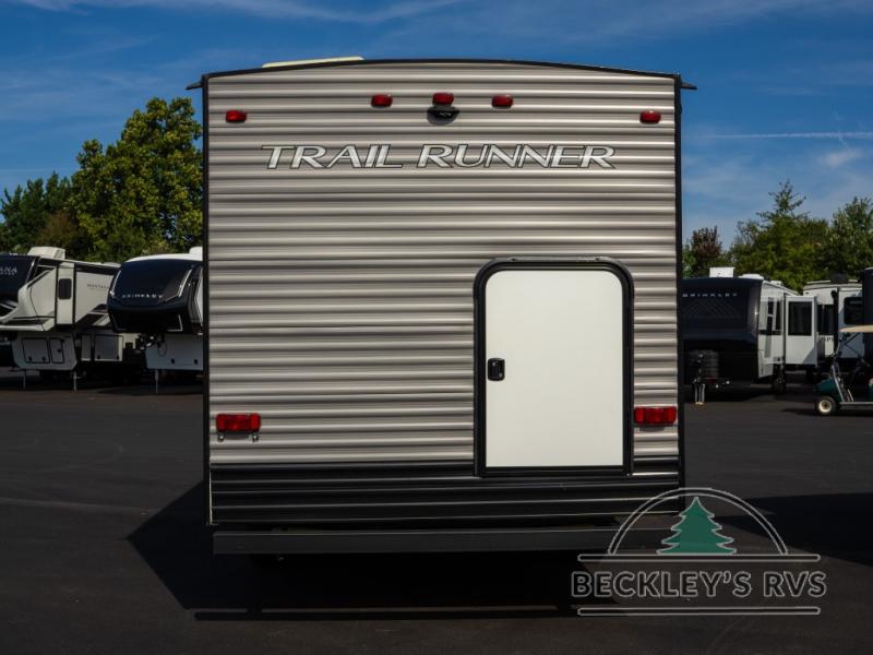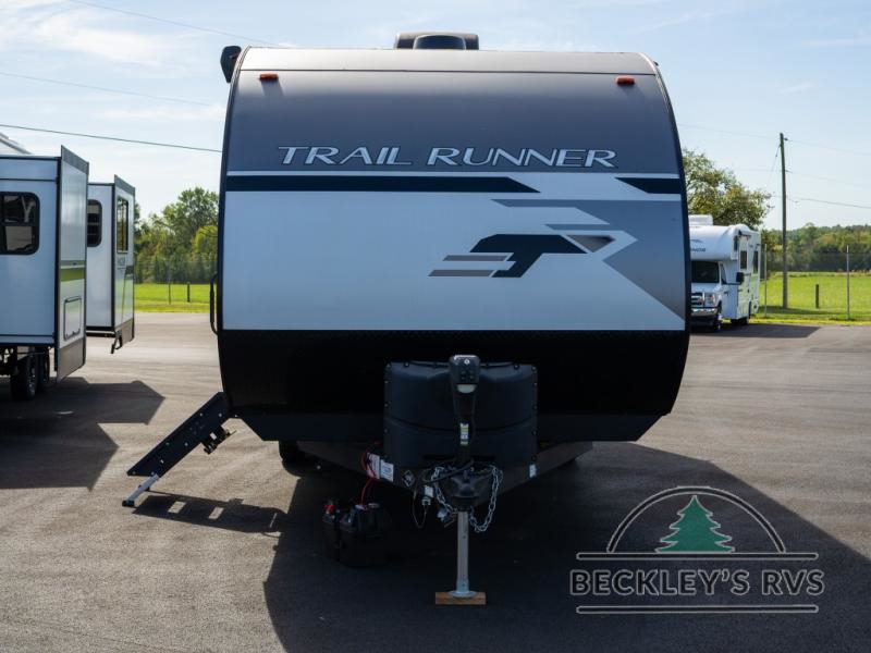 Paradise awaits at the end of the trail with one of these Heartland Trail Runner travel trailers! Experience better wind and water deflection, added strength, and a reduction of tongue weight with the hybrid aluminum front profile that has an aerodynamic radius front cage. A cambered structural steel I-beam frame holds them together and a heated enclosed underbelly protects the units vitals. There is an industry leading mammoth storage space of 57 cu. ft. pass-through storage so you can bring all of your outdoor gear with you. Roller shades in the main living area, woven flooring in all slide rooms, master suites with CPAP storage, and upgraded pressed counters give you the at-home feel you desire. Come find the perfect model for you today!
