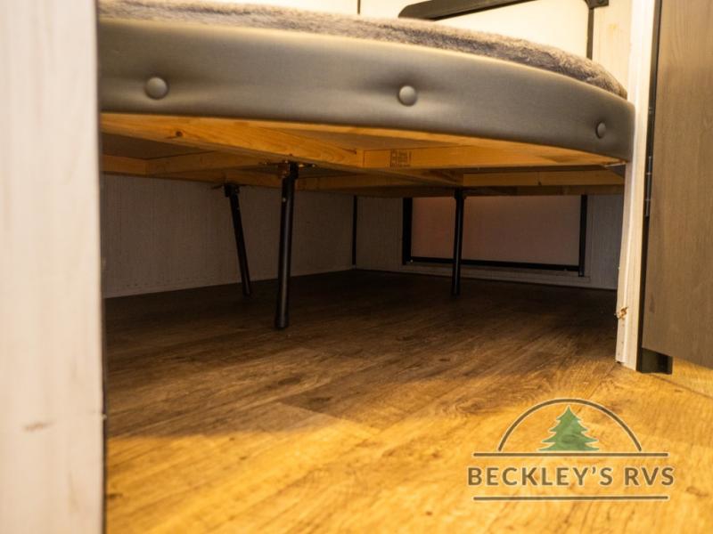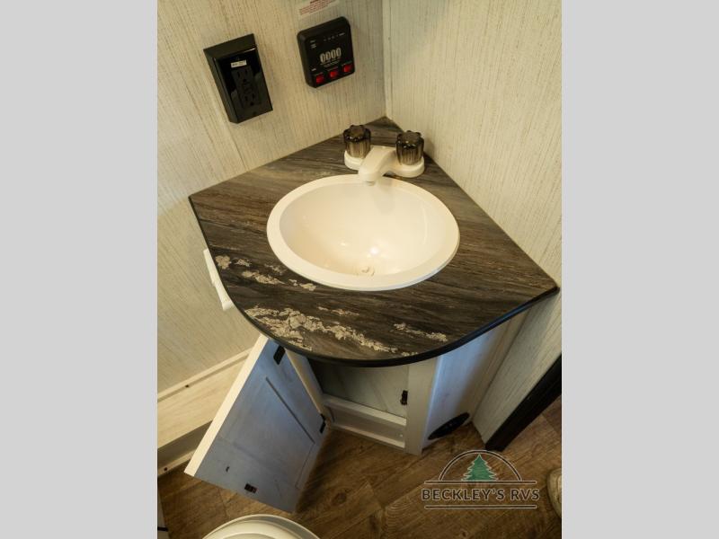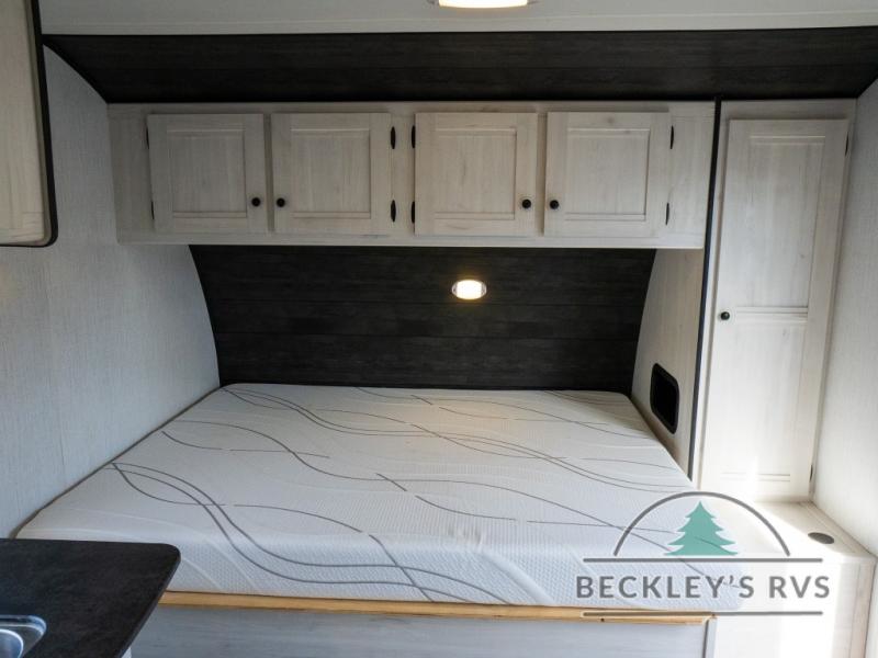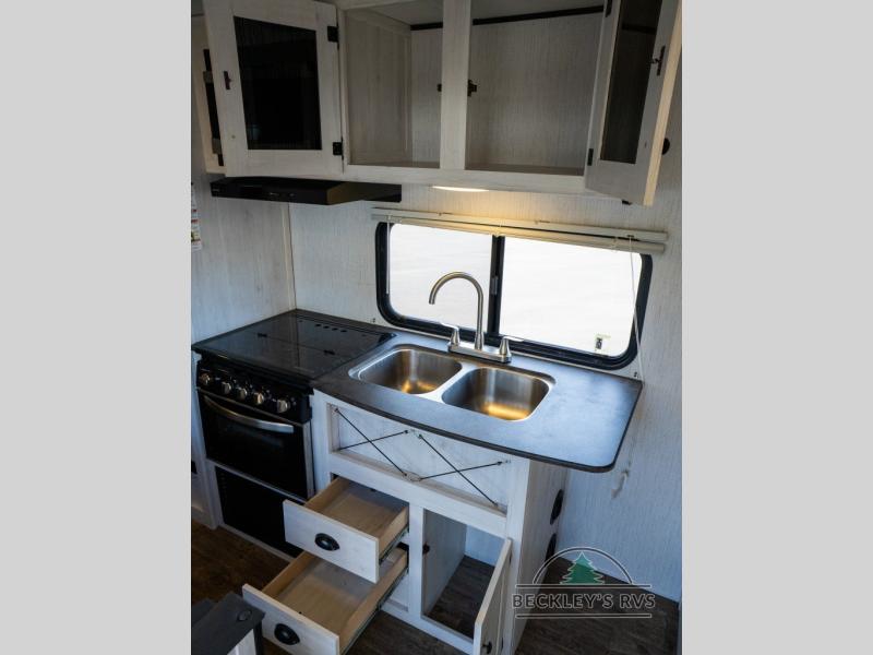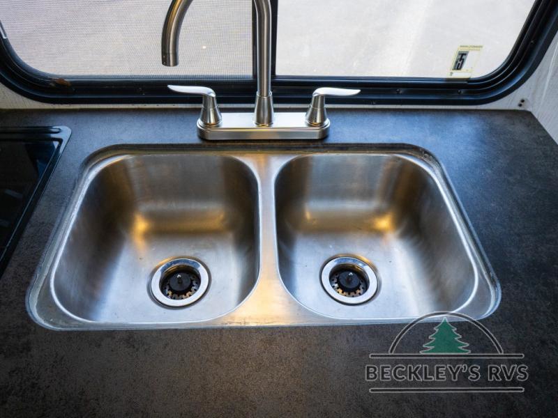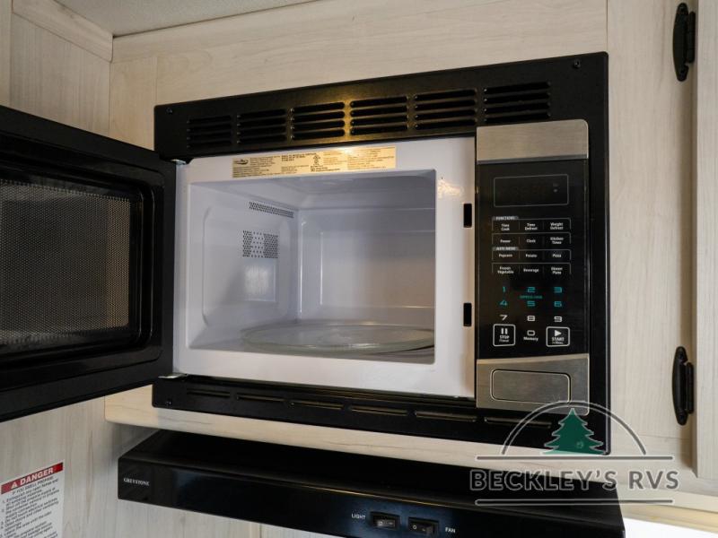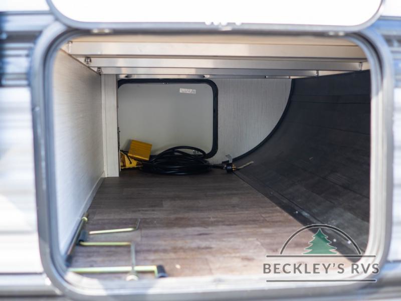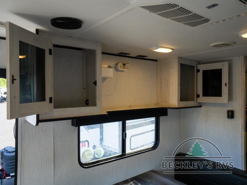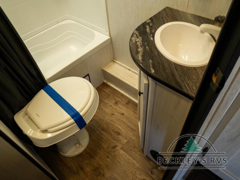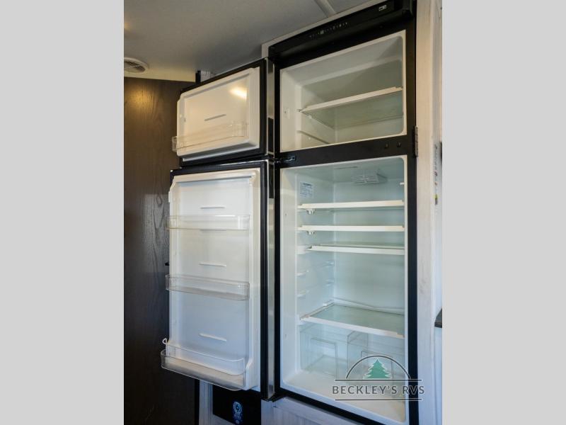 Pack your bags and hitch up this travel trailer for a fun family vacation! It features a set of double bunk beds and a front queen bed with a divider curtain to draw at night. You could even transform the booth dinette into an extra sleeping space when you aren't using it to enjoy a meal prepared with the three burner cooktop and 10 cu. ft. stainless steel refrigerator. Freshen up each morning in the rear corner bathroom with the ABS tub/shower surround and skylight above for added natural lighting as you get ready. Keep the dirt outdoors where it belongs with the outside shower and stay protected rain or shine by the power awning with LED light strip!