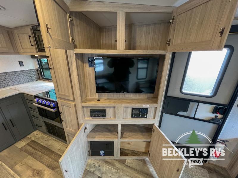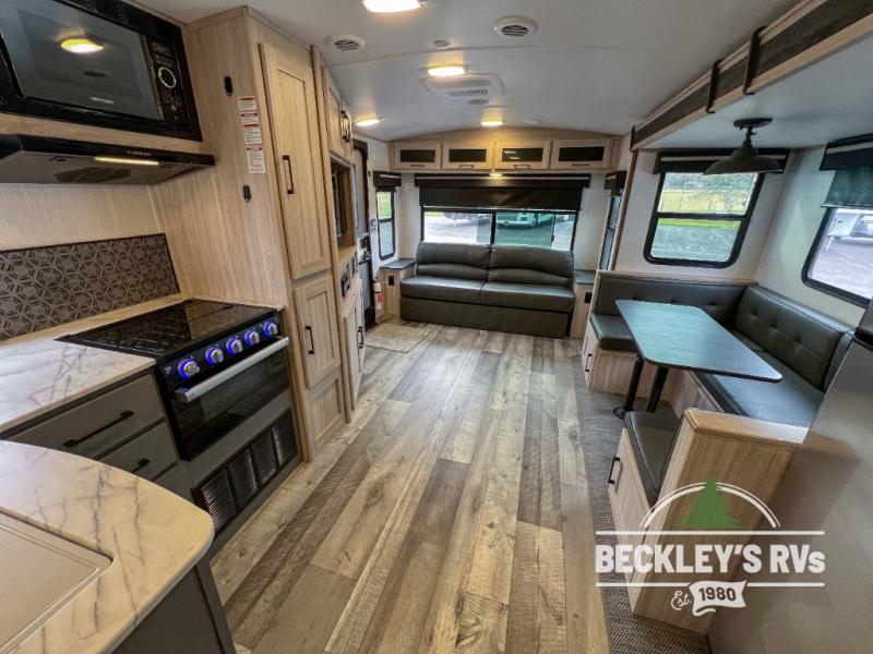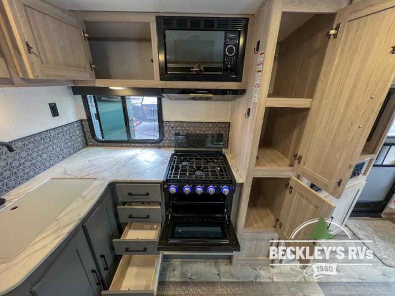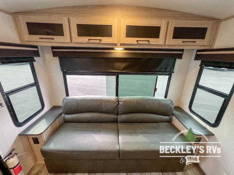 The Heartland Sundance Ultra Lite travel trailers and toy haulers are exceptionally beneficial for a family who is just starting out in the RV lifestyle. Each unit is constructed with an enclosed underbelly, a painted fiberglass front cap with LED lights, a walkable aluminum trussed barrel roof, and a rack and pinion power slide out. You'll have a spare tire and carrier for life's unfortunate mishaps and one unique key for all of your locks with the Keyed Alike system. The interior offers you woven flooring and residential-style furniture for a long-lasting traveling companion. You can use the outside spray port with hose and sprayer for cleaning or hosing down the campsite.