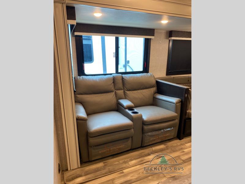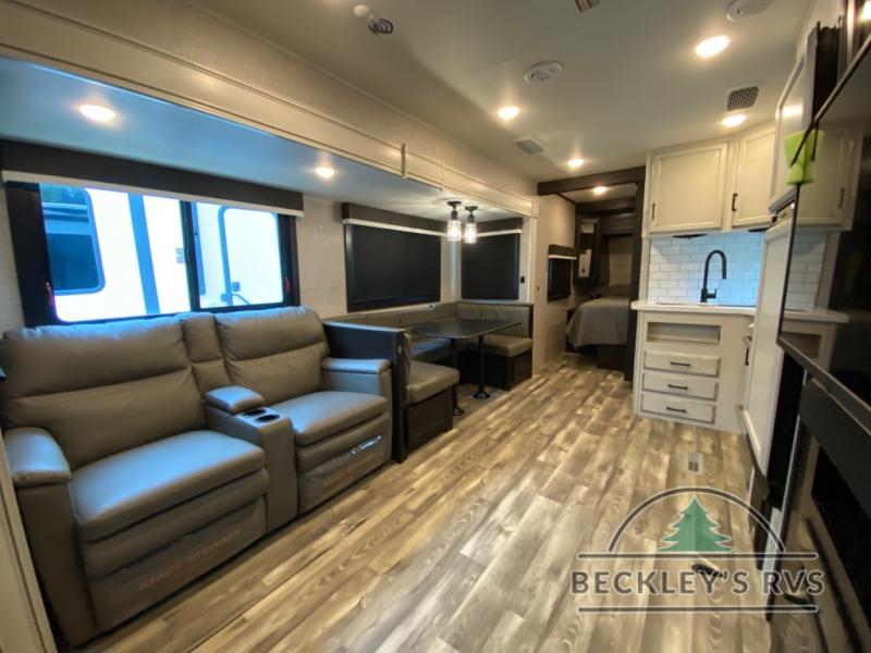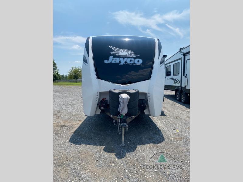 Experience a comfortable tow with every one of these Jayco Eagle HT fifth wheels and travel trailers! They are built with a Stronghold VBL aluminum frame, vacuum bond laminated gel-coated fiberglass exterior walls, and a Magnum Truss roof system with a one piece, seamless DiFlex II material that has been tested as the strongest roof in the industry. The HELIX cooling system comes with an exterior mounted 15,000 BTU "Whisper Quiet" A/C unit, Jayco exclusive insulated dual duct design, directional and closeable A/C vents, and larger air vents with user accessible filters so you can stay cool even on the hottest summer day. With a mandatory Luxury package, you will get handy features like the JAYCOMMAND smart RV system to control your unit at the touch of a finger, an electric auto-leveling so you can set up quick and easy, and blackout roller shades for added privacy. Come find the right one for you today!