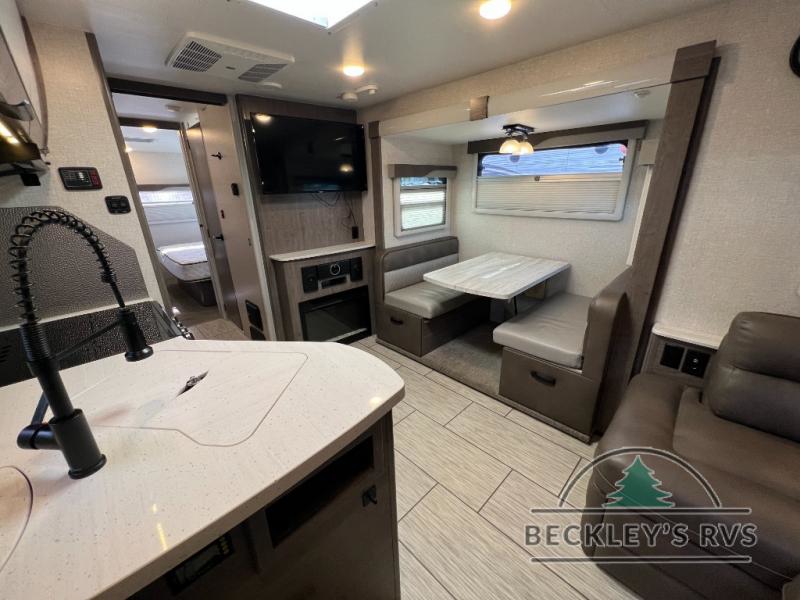 This Lance travel trailer has the best bedroom out of the entire brand! Not only do you have a private bedroom at the back of the trailer with a slide out for more walking space, but you also have a king-size bed just waiting for you to enjoy its comfort. Another comfortable feature found on this trailer is the front 42" x 72" sofa bed. Added to the booth dinette and king-size bed, this sofa helps this trailer sleep five people during every getaway. You'll also be quite excited to find two smart LCD TVs that you can use to watch movies, and you can even add an optional 40" smart LCD TV to the bedroom.