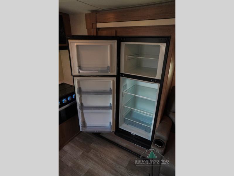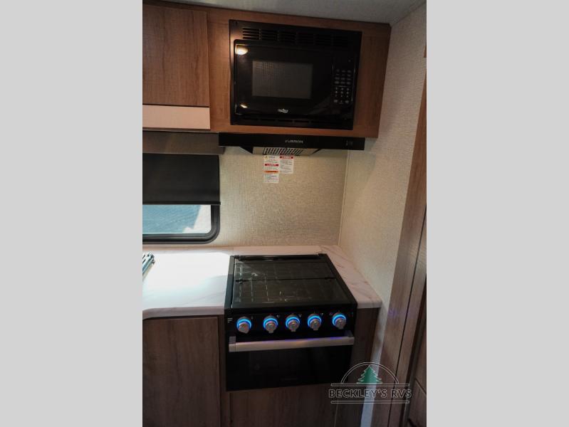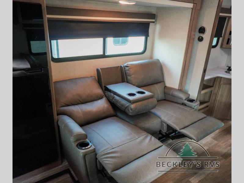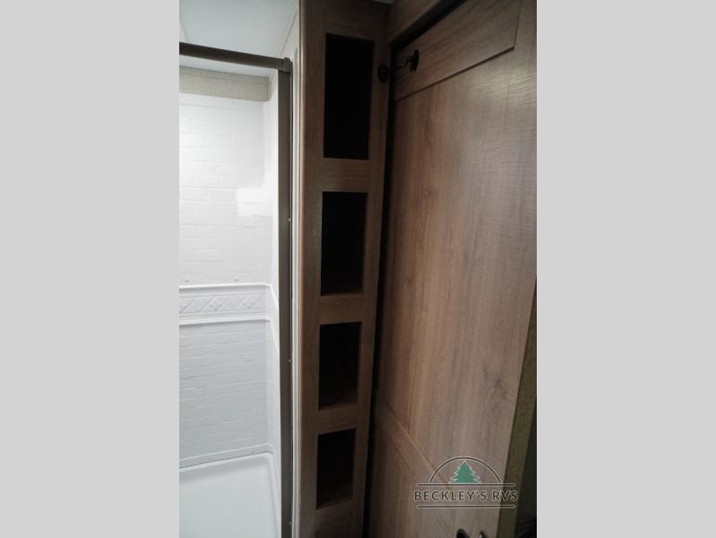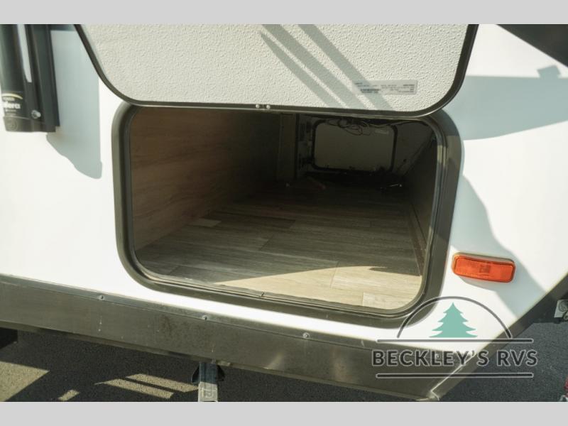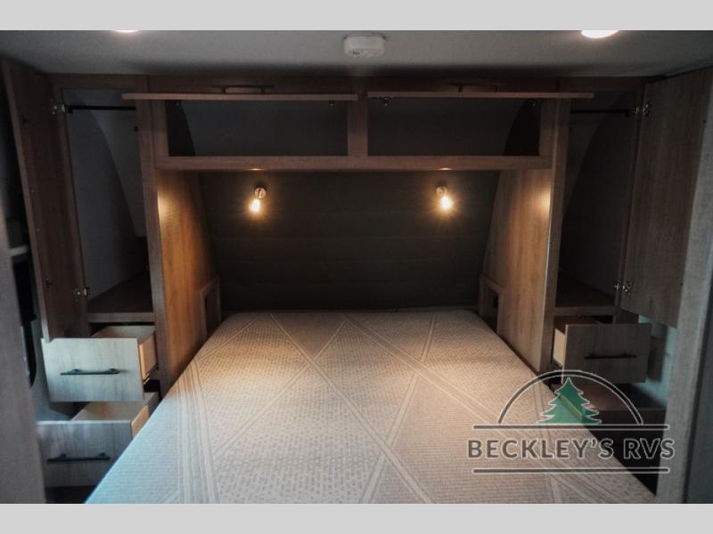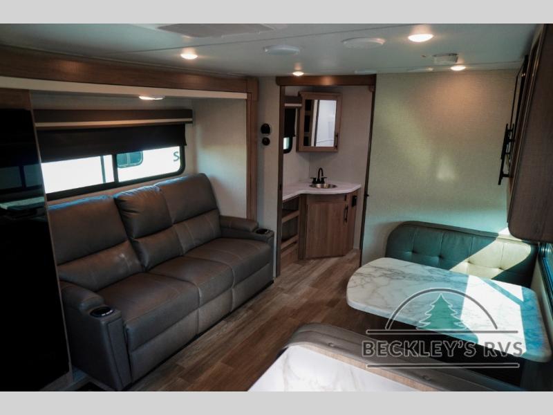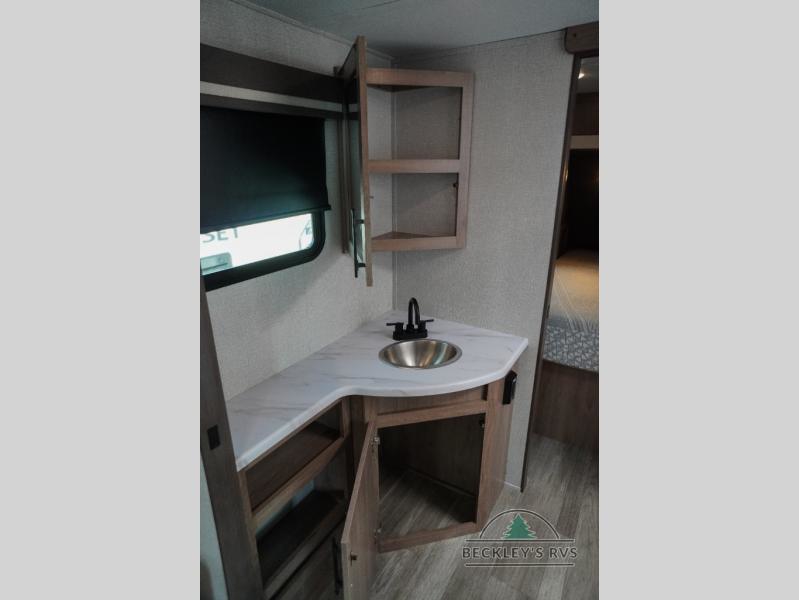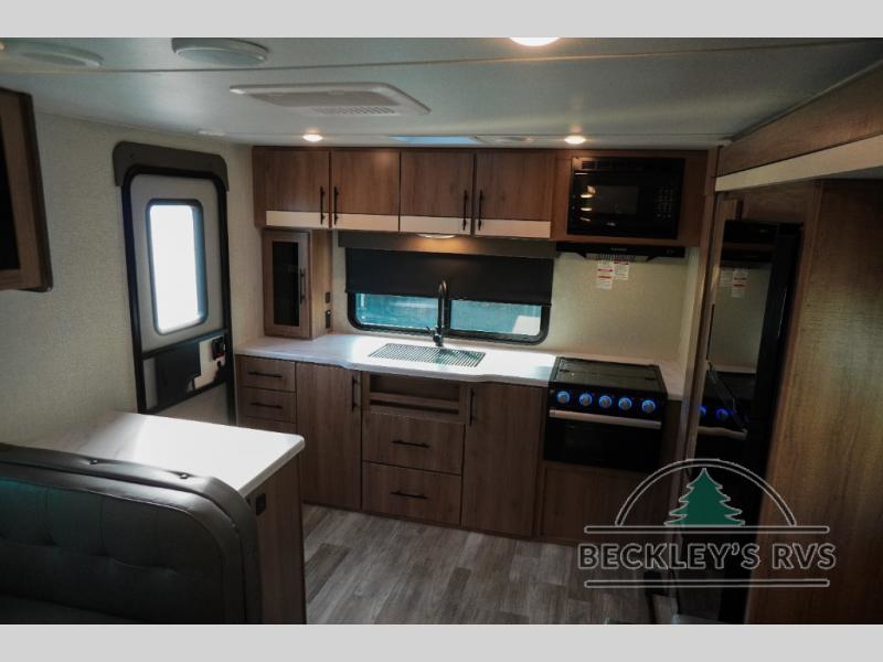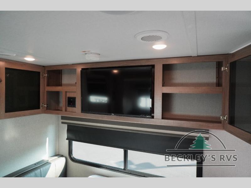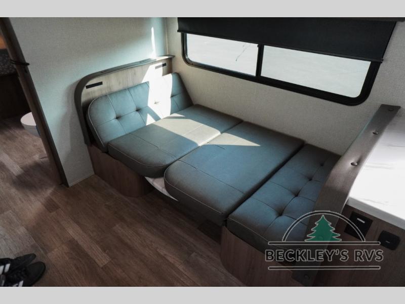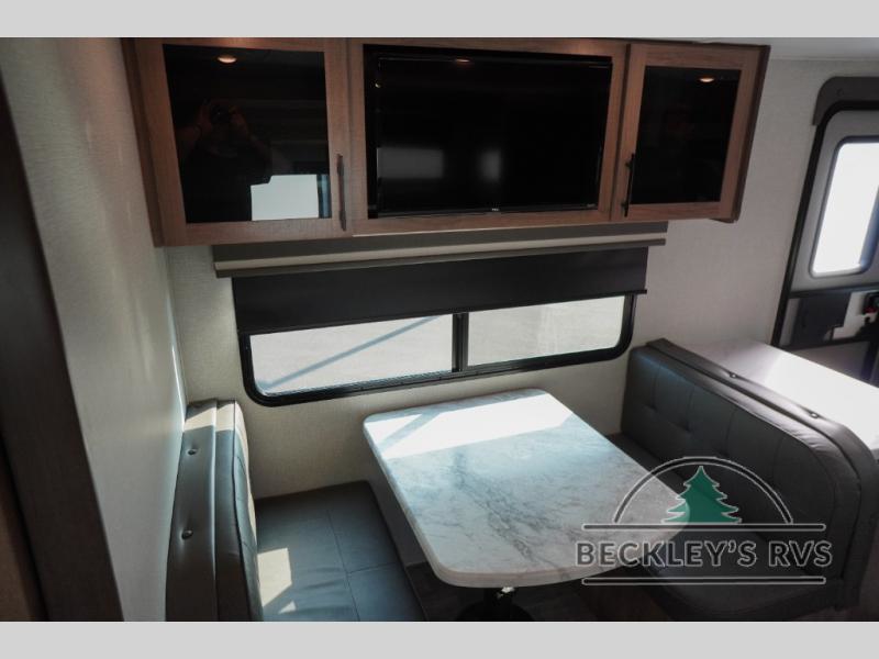 Treat yourself to a weekend of fun in this Imagine XLS travel trailer! Whether it's just you and your spouse, or you've chosen to bring along a group of friends, this trailer will meet the need. The front bedroom can sleep two people on the walk-around queen-size bed. The bedroom is quite functional because it not only contains the second exterior entry door, but it also has a private entrance into the walk-through bathroom since it is located on the other side of the bathroom. The booth dinette is functional too because it can transform from a dining location into a sleeping location, and the theater seating is directly across from the 32" LED TV for easy viewing. When you enter through the entry door that is right next to the rear kitchen, you'll be able to take off your shoes and put them in the shoe storage below the dinette.