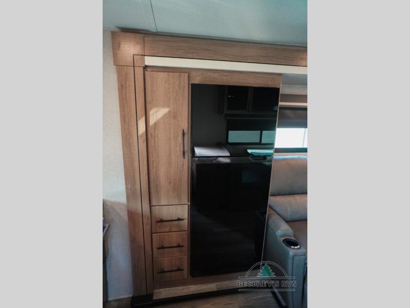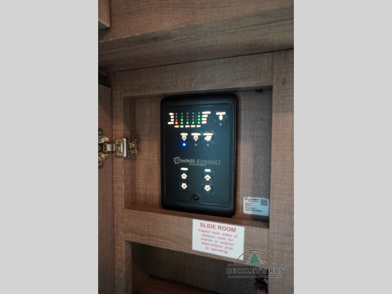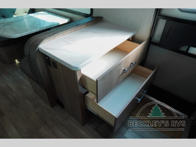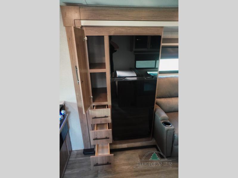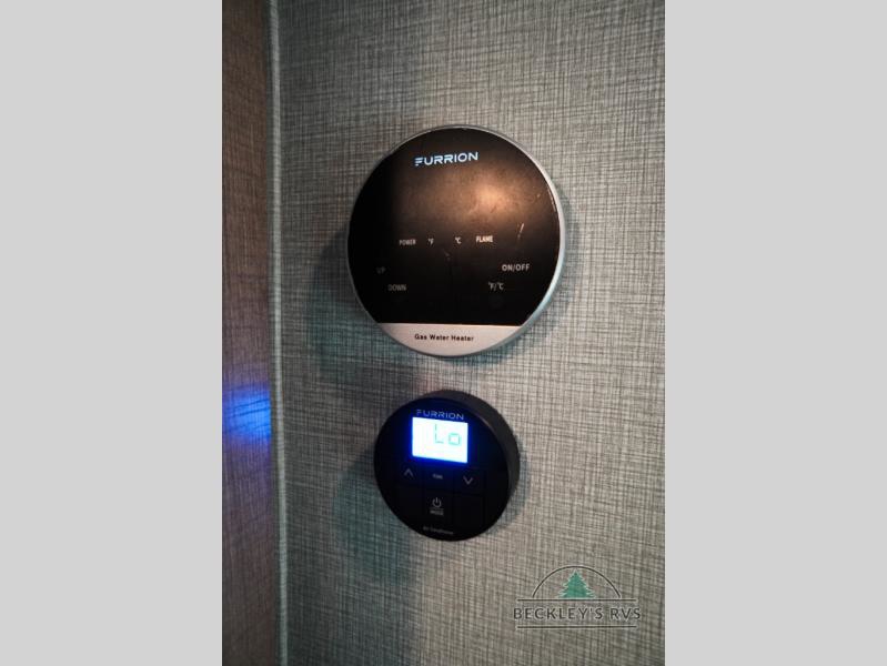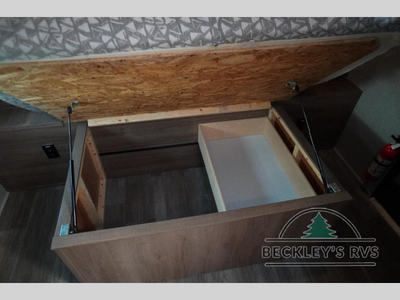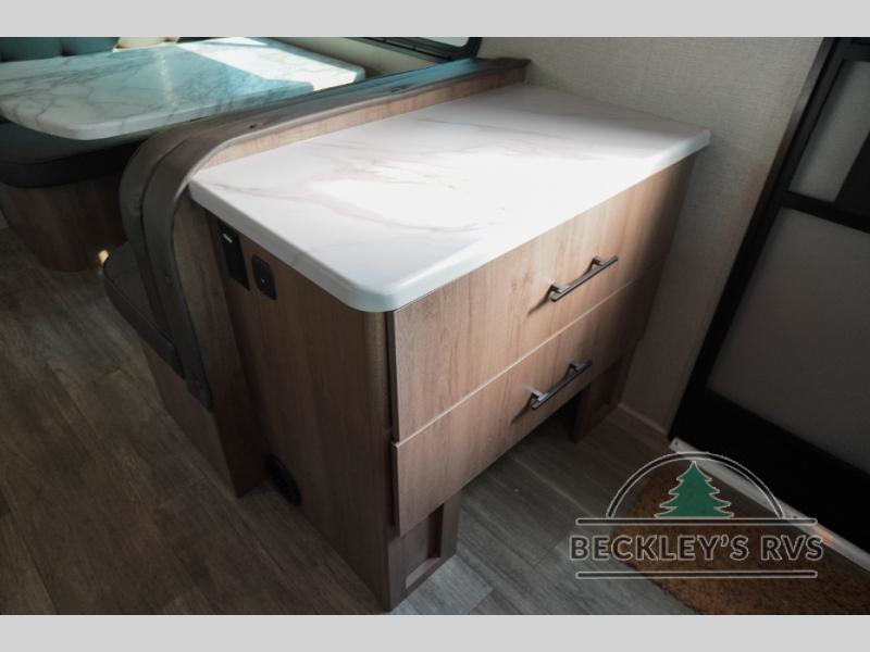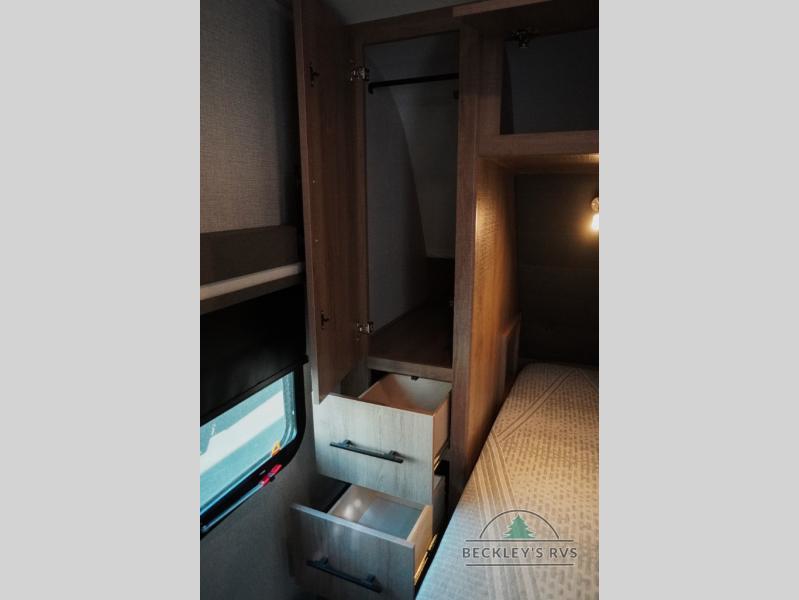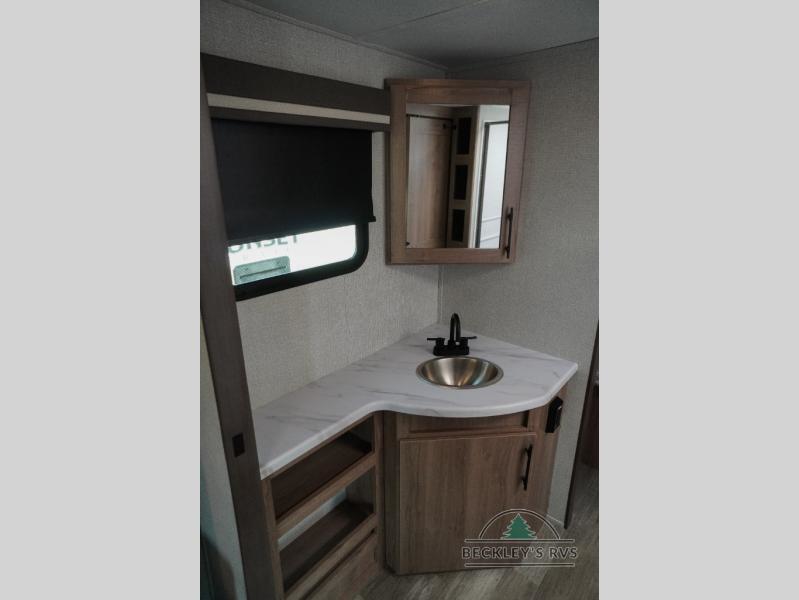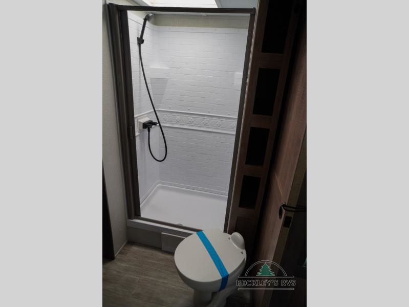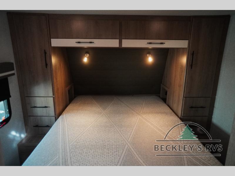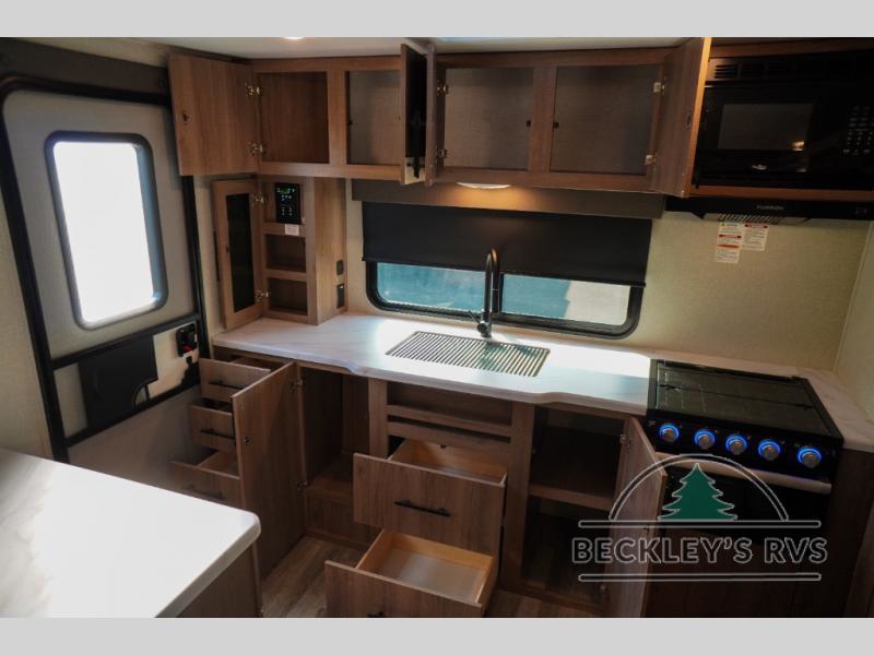 Treat yourself to a weekend of fun in this Imagine XLS travel trailer! Whether it's just you and your spouse, or you've chosen to bring along a group of friends, this trailer will meet the need. The front bedroom can sleep two people on the walk-around queen-size bed. The bedroom is quite functional because it not only contains the second exterior entry door, but it also has a private entrance into the walk-through bathroom since it is located on the other side of the bathroom. The booth dinette is functional too because it can transform from a dining location into a sleeping location, and the theater seating is directly across from the 32" LED TV for easy viewing. When you enter through the entry door that is right next to the rear kitchen, you'll be able to take off your shoes and put them in the shoe storage below the dinette.