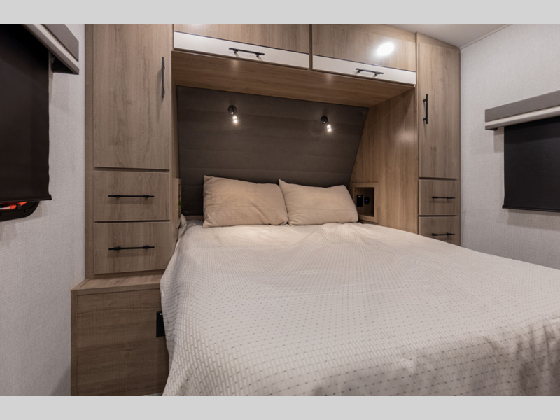 Just imagine leaving the world behind and secluding yourself away with your favorite people in your Grand Design Imagine travel trailer! The Imagine has been designed to enjoy extended season camping and includes a high-capacity furnace, a heated and enclosed underbelly with suspended tanks, a designated heat duct to the subfloor, and a high-density roof insulation with attic vent. You'll have maximum head room on the interior with 81" radius ceilings, and large panoramic windows to let in natural lighting. The exclusive drop-frame pass-through storage compartment is going to allow you to bring along lots of equipment, and the universal docking station is an all-in-one location for utilities and hook-ups. You'll also have industry-leading tank capacities so that you can fill and empty your tanks less often.