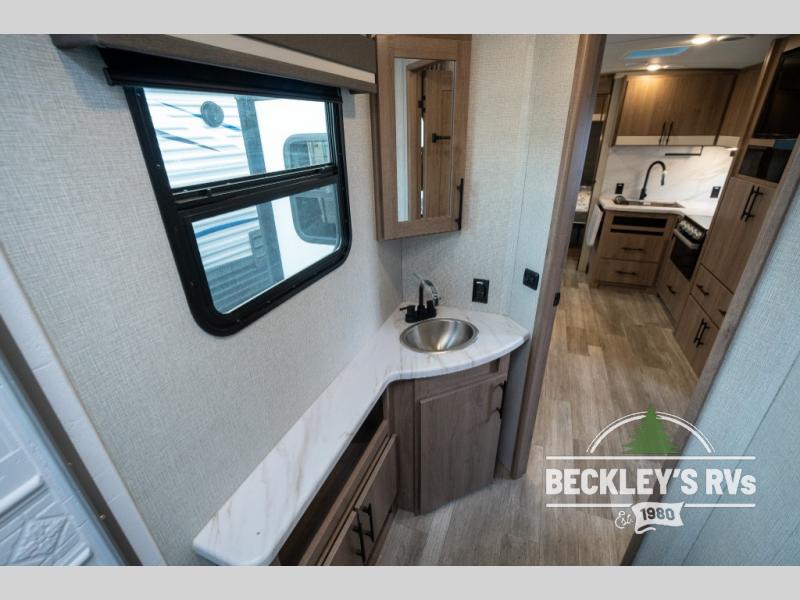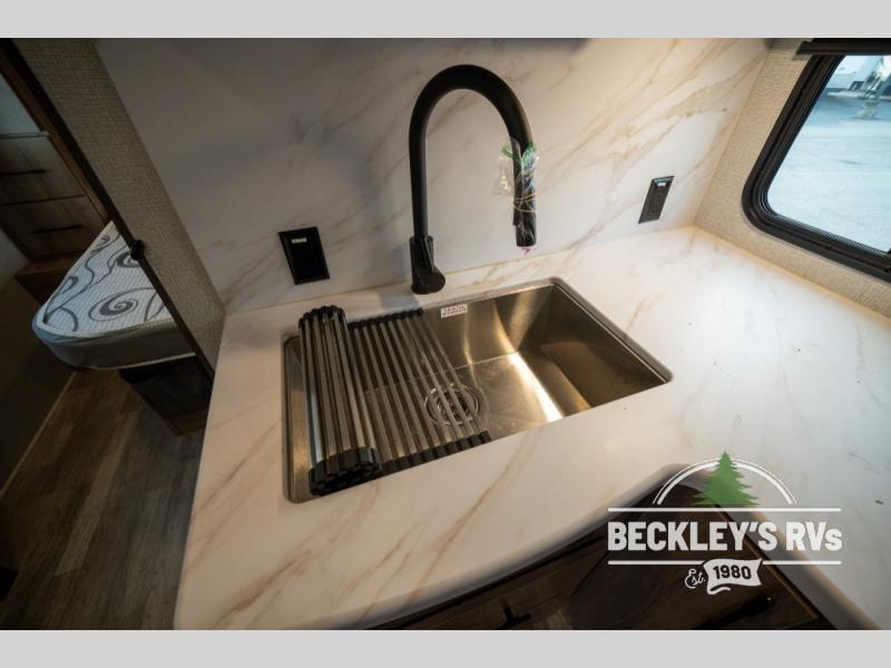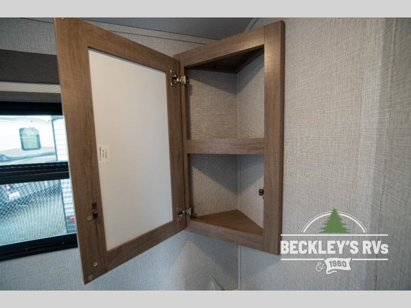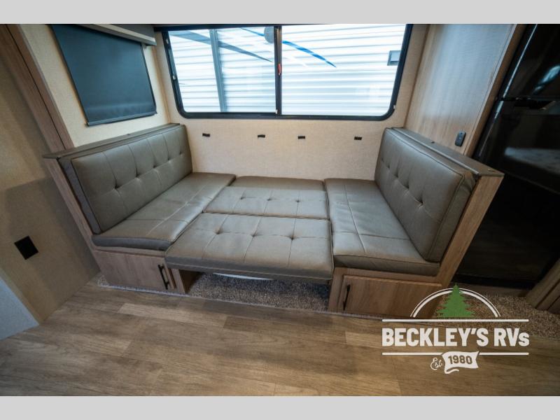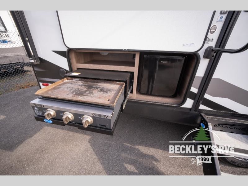 Just imagine what you can do with this Imagine travel trailer! You'll have a U-shaped dinette with removable ottoman so that you can relax in true comfort. The kitchen sits across from the dinette and includes a flip-up countertop extension for more prep space. The private bedroom includes a 60" x 80" queen bed with overhead cabinets and closets on either side of the bed, and the 47" x 76" bunks have privacy curtains that you can close to create a private sleeping area. You'll love having your own bathroom with 30" x 36" shower and skylight so that you don't have to wait in line to use the campsite's facilities, and you can head outside anytime to create a delicious meal at the outdoor griddle with nearby 1.6 cu. ft. refrigerator.