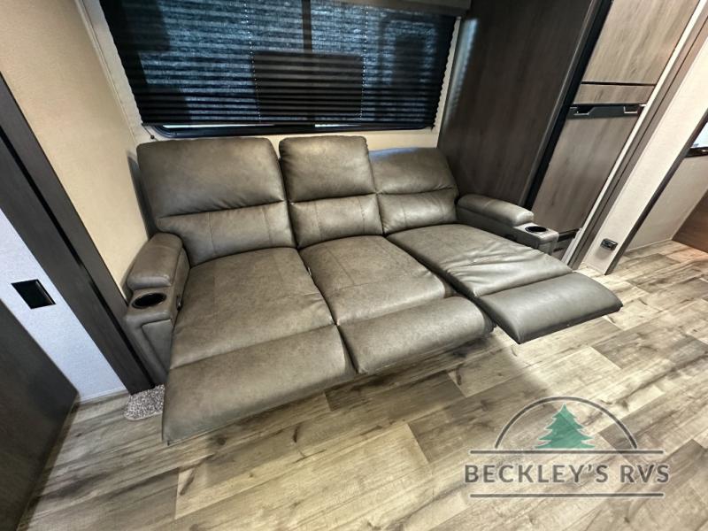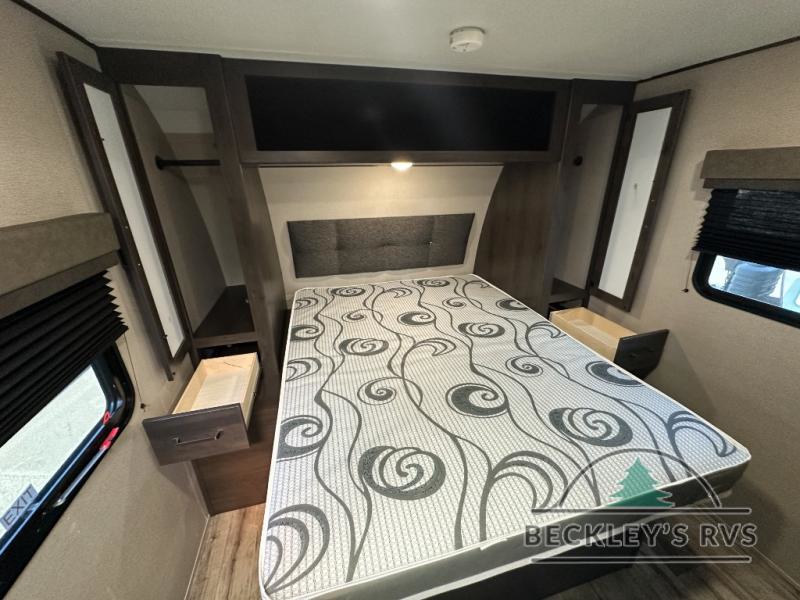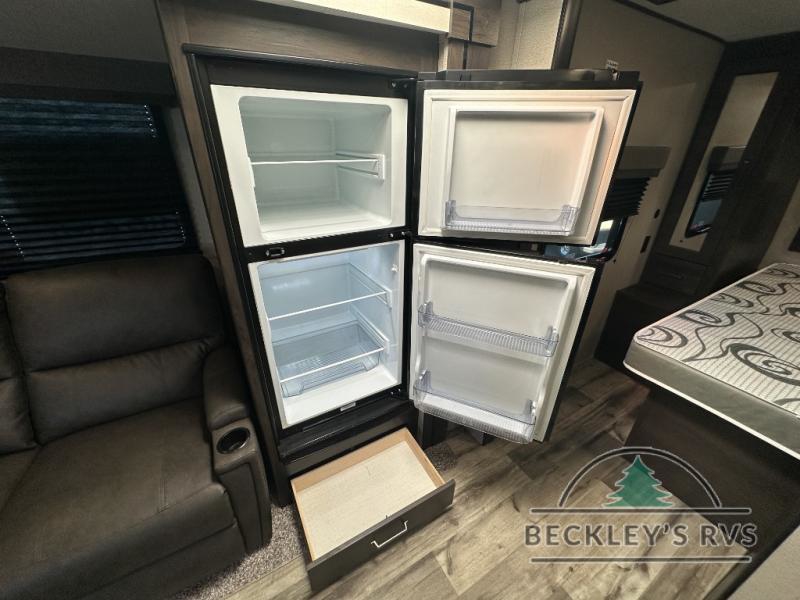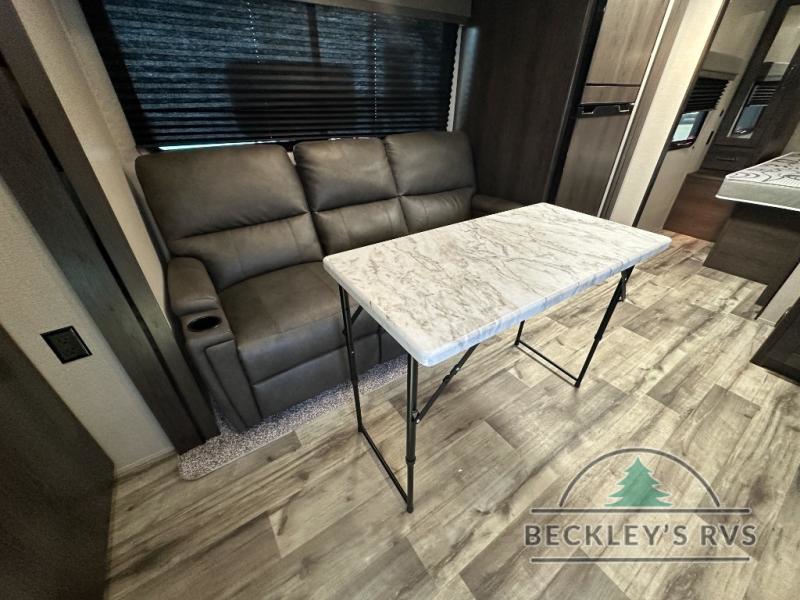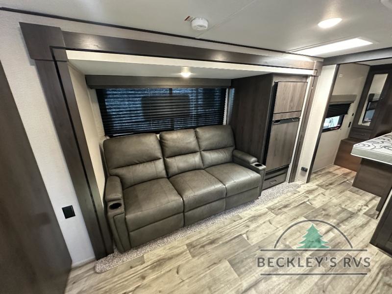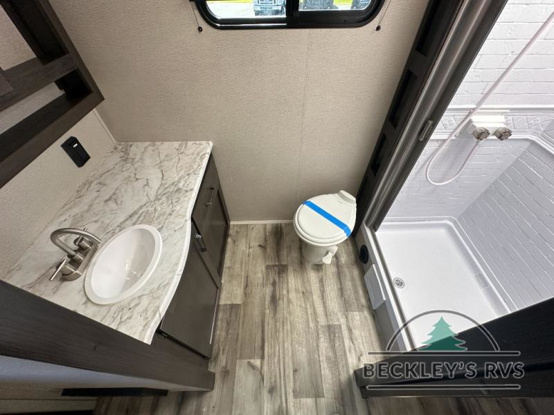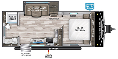 This travel trailer will feel just like home with its private bedroom that includes a queen bed, overhead storage, and TV prep if you choose to bring along your own television. The full rear bath is both spacious and tucked away for privacy, and the main living area includes a slide out for added space. Here, you'll enjoy dining around the U-shaped dinette or relaxing on the optional theater seats if you go that way. Whether you're cooking dinner in the spacious kitchen, relaxing under the 17' power awning, or cleaning up in the walk-in shower, you will always have a good time in this travel trailer!