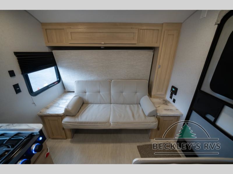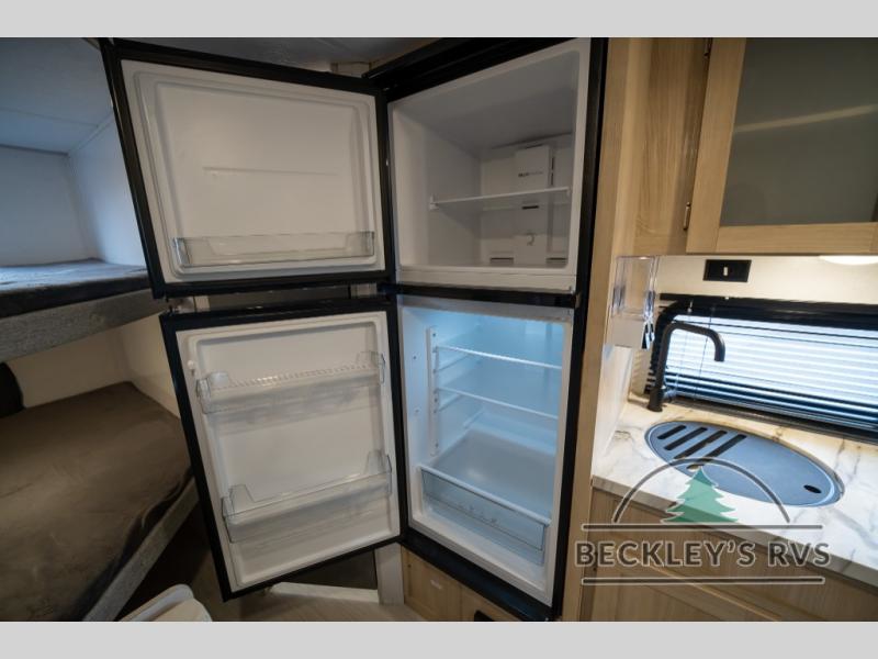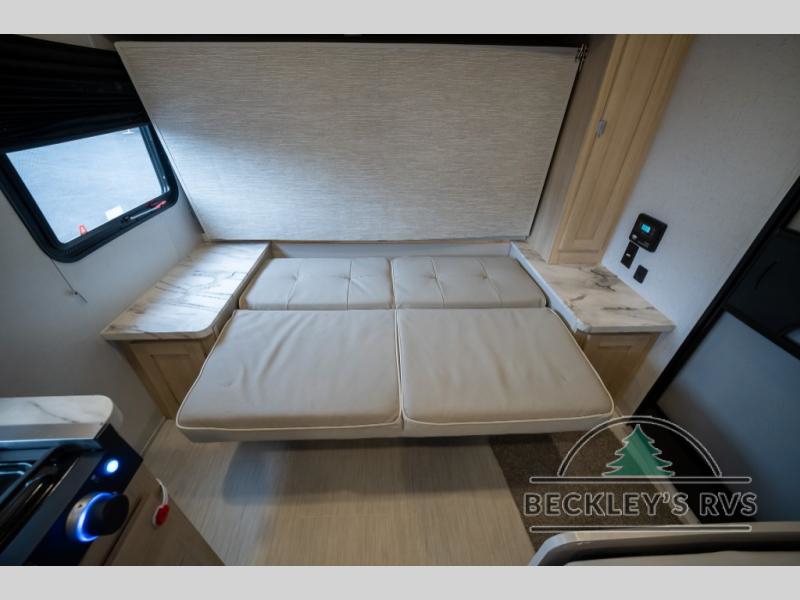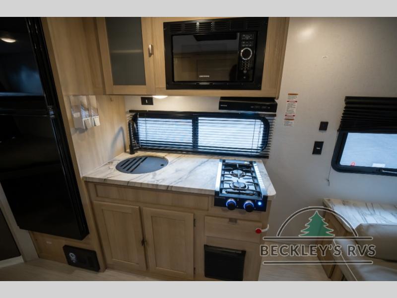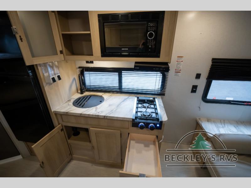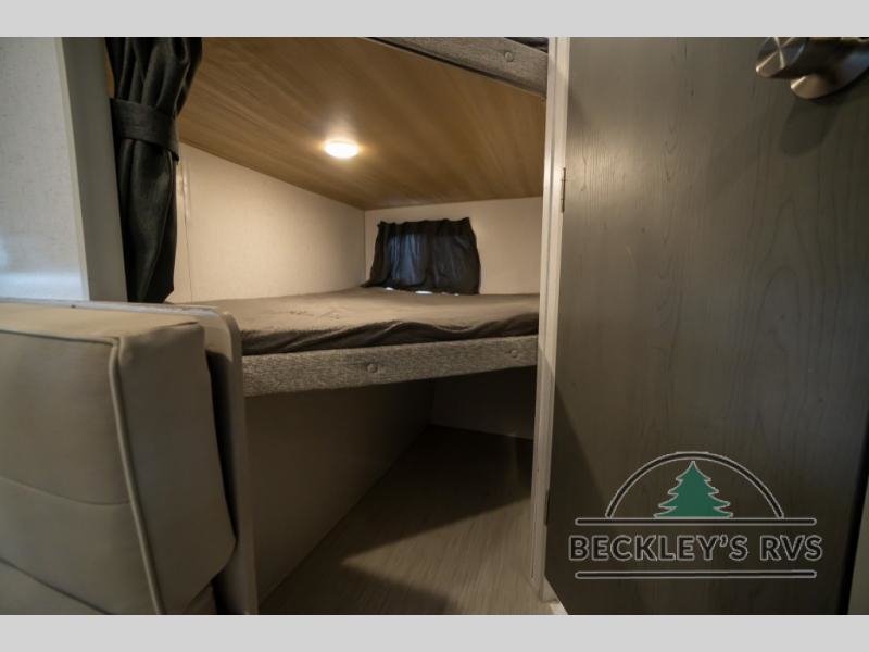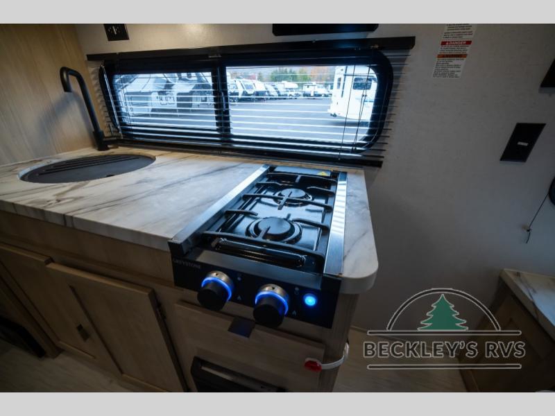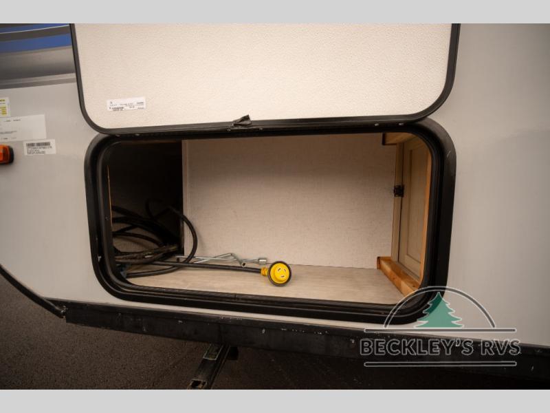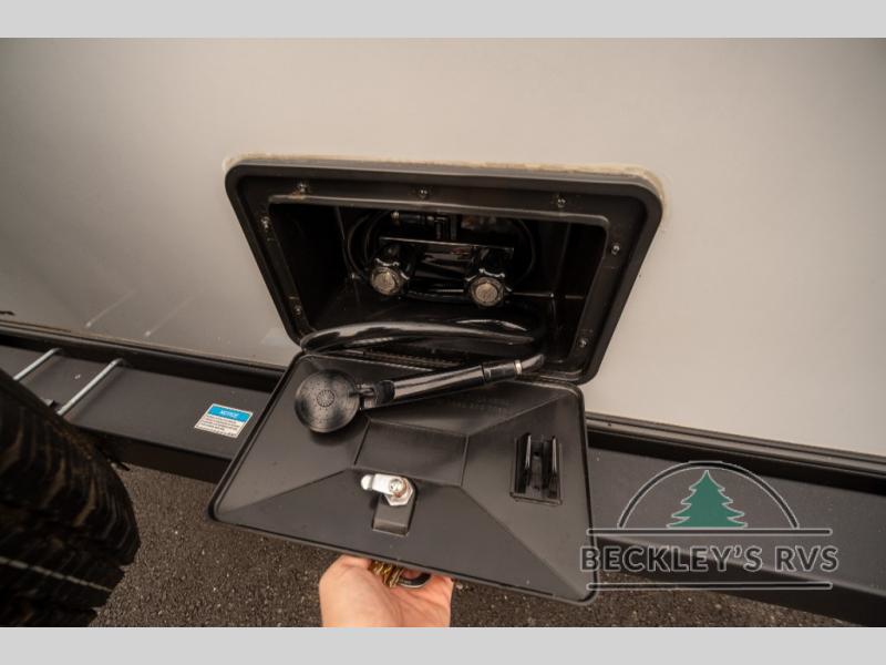 No need will go unmet with this travel trailer! It features a front Murphy bed that will double as seating and sleeping space, double-size bunk beds with storage, plus a booth dinette. You can prepare your best home cooked meals indoors with the two burner cooktop or head to the outside kitchen to fry up some burgers while breathing in some fresh air. You will also appreciate the outside shower and the front exterior full pass-through storage area for all your outdoor gear.