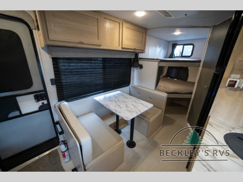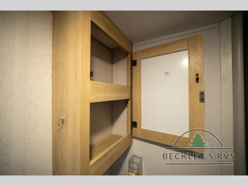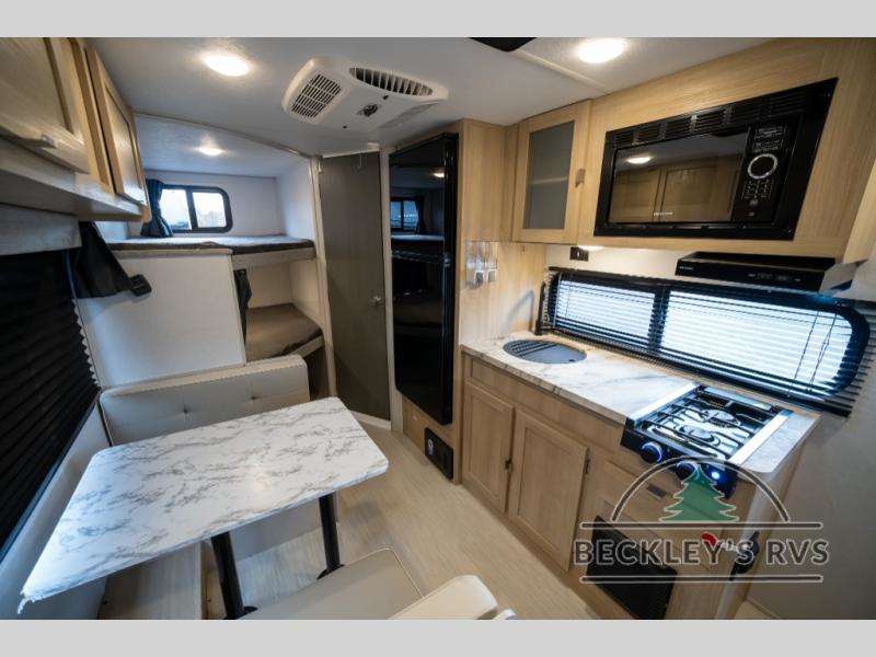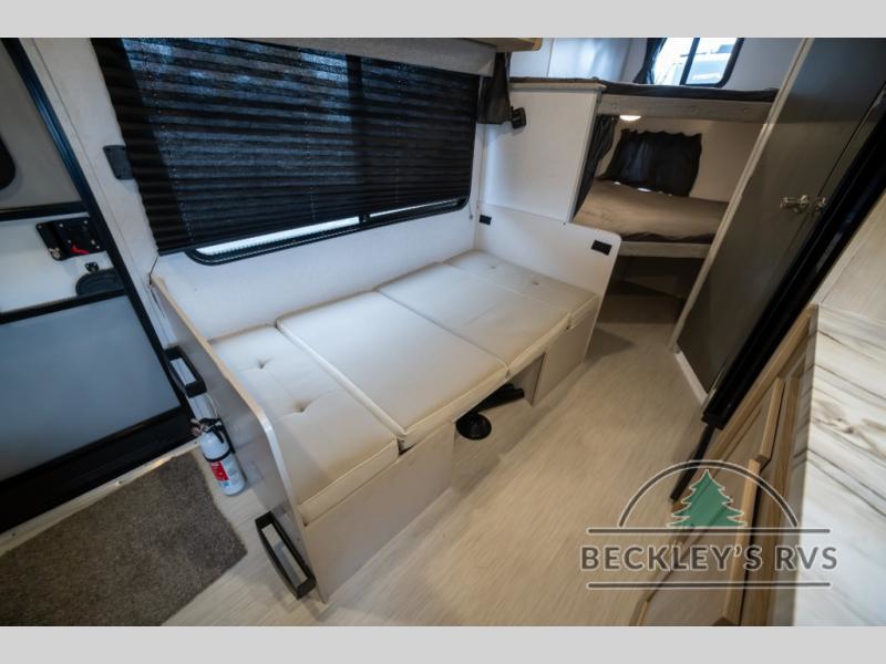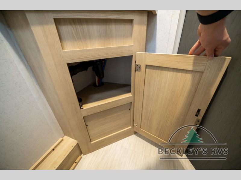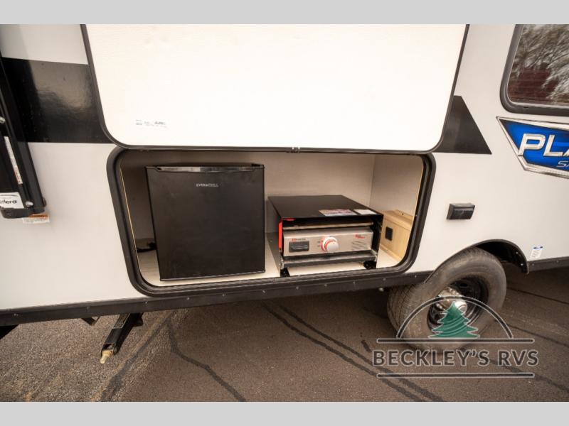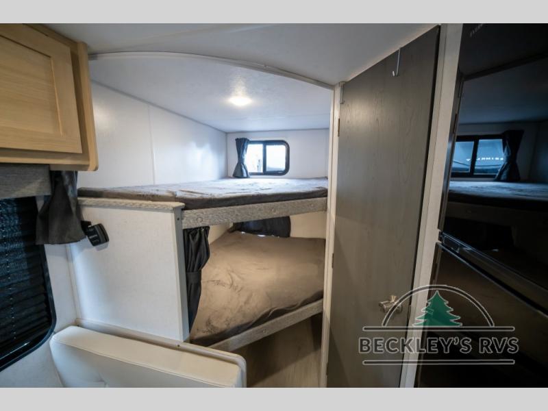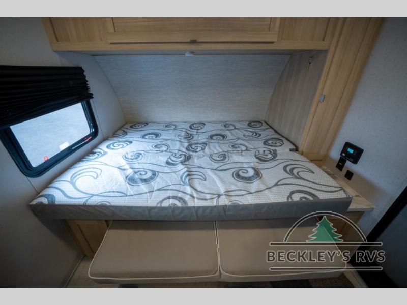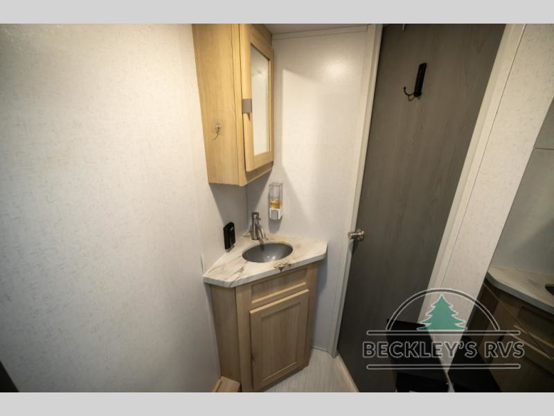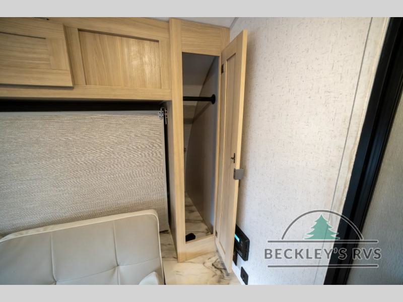 No need will go unmet with this travel trailer! It features a front Murphy bed that will double as seating and sleeping space, double-size bunk beds with storage, plus a booth dinette. You can prepare your best home cooked meals indoors with the two burner cooktop or head to the outside kitchen to fry up some burgers while breathing in some fresh air. You will also appreciate the outside shower and the front exterior full pass-through storage area for all your outdoor gear.