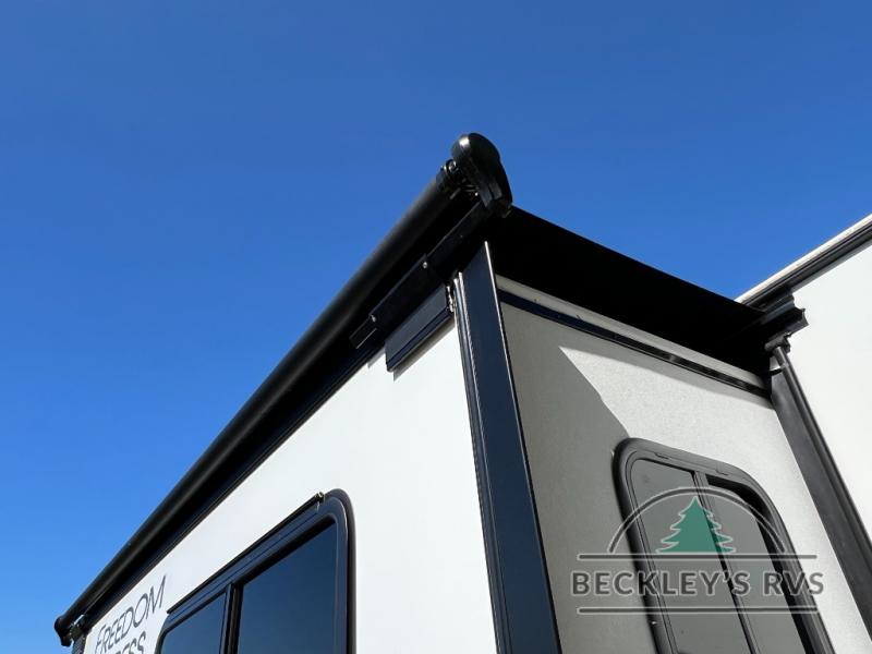 With any Freedom Express Ultra Lite travel trailer by Coachmen you will appreciate quality construction materials, such as vacuum bonded walls with Azdel composite, a 3/4 gel coated fiberglass cap with an automotive glass windshield, and a heated enclosed underbelly. Each model also features Tufflex PVC roofing, front diamond plate, and E-Z Lube axles for smooth towing. You'll find Carefree flooring indoors, as well as night shades, a dual basin American stonecast sink, and hidden hinge cabinetry. The power tongue jack included with the Ultra Lite Express Pack will make set-up a breeze, and each model includes back-up camera prep and they are Freedom solar ready if you plan to go off-grid. Enjoy lightweight camping with a Freedom Express Ultra Lite travel trailer today!