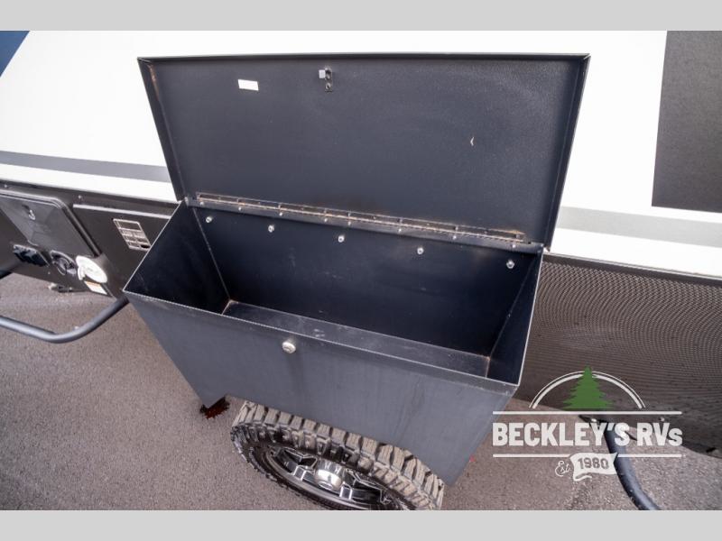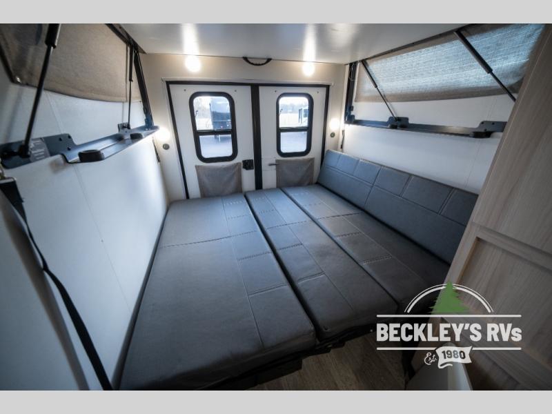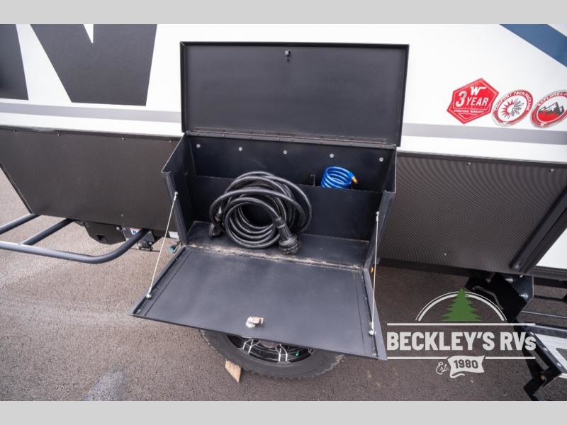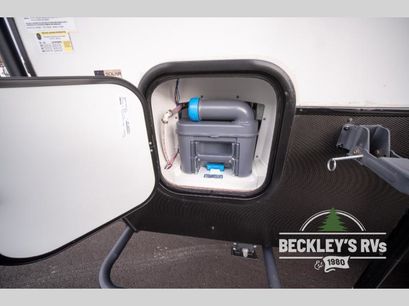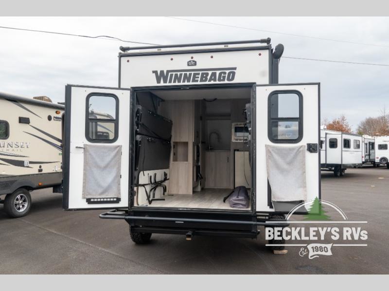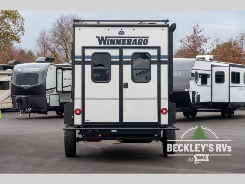 The Hike 100 travel trailers by Winnebago Industries Towables are the outdoor enthusiasts dream RV! It's light enough to be towed by smaller tow vehicles, but still includes plenty of space for your gear. Each model is constructed with one-piece thermo-foil insulation, an NXG engineered frame, a fully enclosed underbelly and tanks, plus a fully walkable roof. You will love the 200-watt solar panel with side-mount solar prep for your off-grid needs, and the patented powder coated exterior exoskeleton rack will be perfect for kayaks, hiking gear, or paddleboards. There are also thick core pass-through storage doors outside, along with a power awning with LED lights, plus power stabilizer jacks and a power tongue jack to be set up in no-time! The interior features contemporary cabinetry, USB ports to charge your electronics, additional gear storage, plus a portable JBL speaker to listen to your favorite tunes at the campsite.