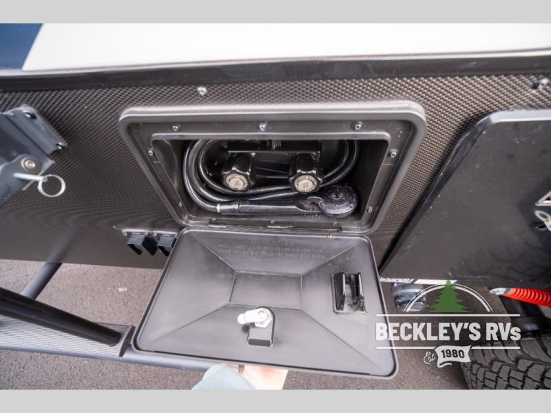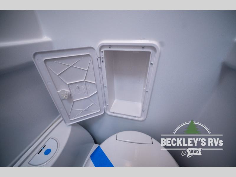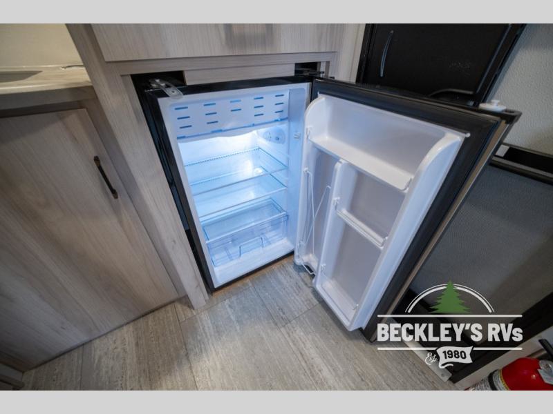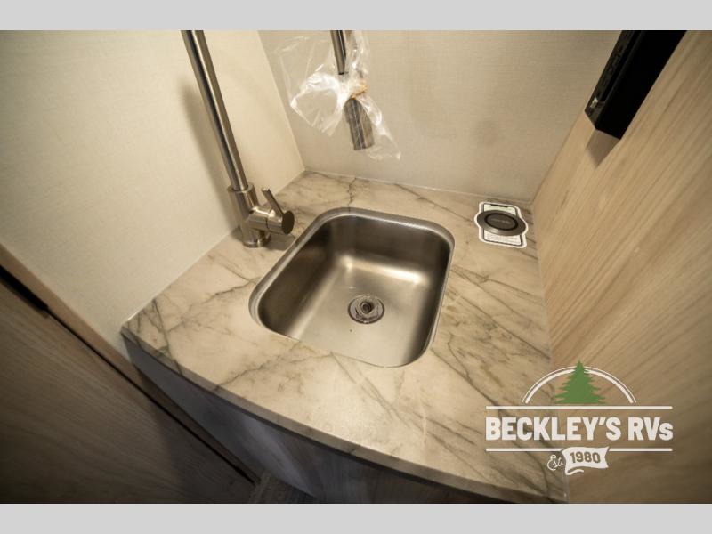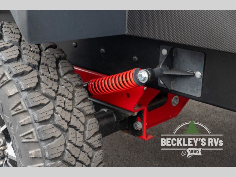Thrill seekers don't have to give up inside comforts when they seek unknown camping spots! This trailer allows two to sleep on the 60" x 70" drop down bed after enjoying a meal at the two folding bench seats with a folding table in between. The cook will have a portable induction cooktop to make meals, an undermount single bowl sink with cover to cut veggies and wash the dishes, plus a 3.1 AC/DC compressor refrigerator for the cold items. The wet bath with shower and integrated wet/dry storage is next to the wardrobe which is convenient. You will also enjoy a wireless cellphone charger, TV prep if you want to bring along your own TV, plus a pull-out countertop extension for more prep space!