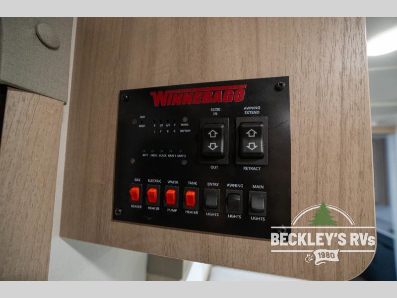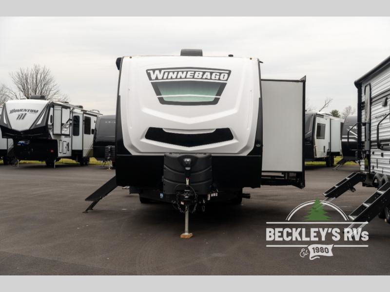With any Minnie travel trailer by Winnebago Industries Towables, you'll be gaining an award-winning ticket to the good life! Lightweight towing is provided by the NXG engineered frame, and the Comfort Tech package will allow you to camp in all seasons with its enclosed underbelly, extreme weather radiant foil wrapping, and insulated heating ducts. Each model includes best-in-class exterior storage with up to 44 cu. ft. for all your camp gear, plus innovative interior storage for your belongings. You'll also find power stabilizer jacks outside, along with premium JBL speakers, an outdoor shower, a campside spray port, plus many more convenient features. The 200-watt solar panel will be perfect for some off-grid camping, and the Winnebago all-in-one control panel will allow you to control all of your units functions in one easy location. Head indoors to enjoy the full-overlay European style cabinetry and modern Cobalt decor, plus there are flexible furnishings, an open galley, and comfortable sleeping arrangements!