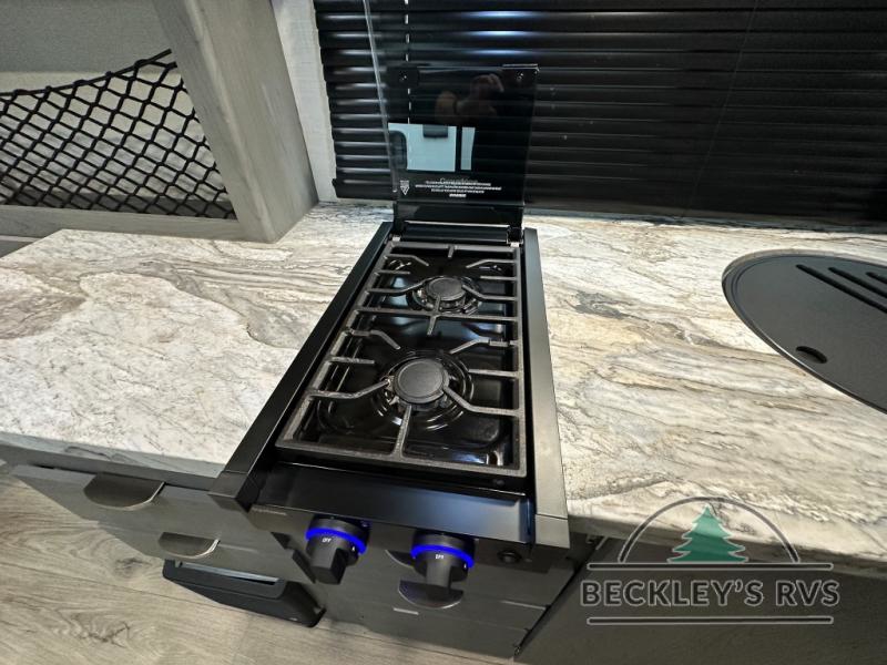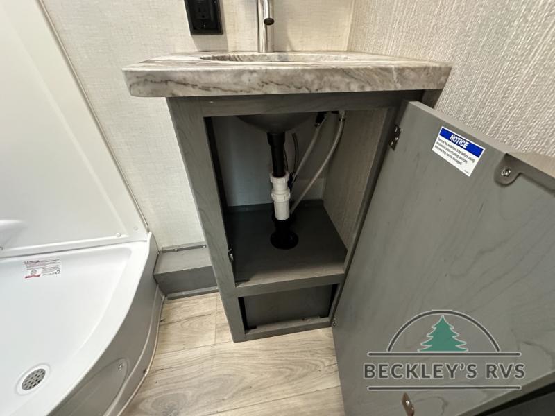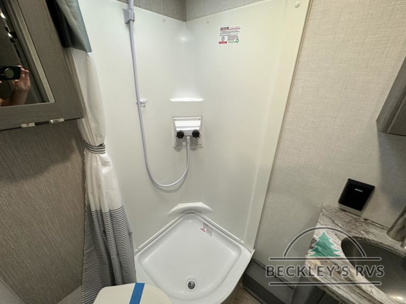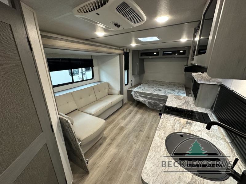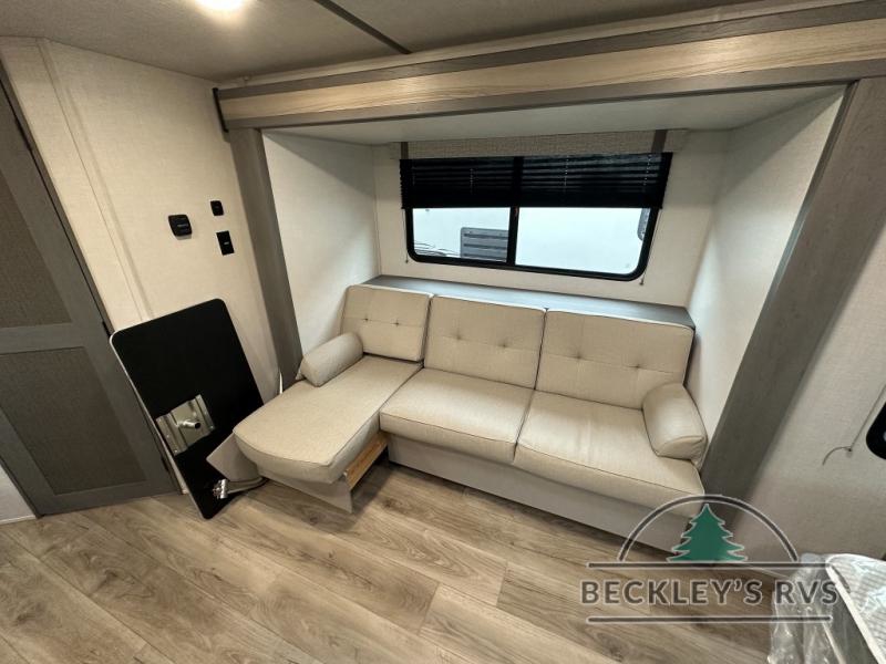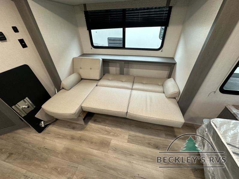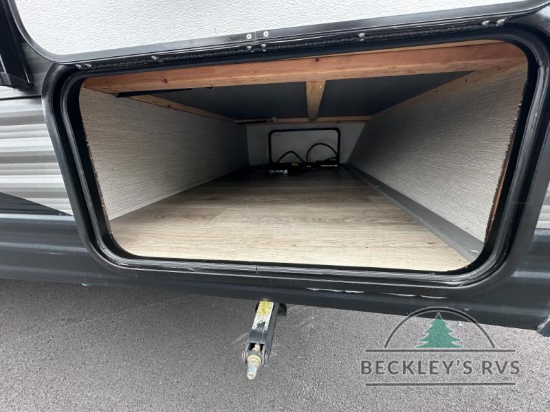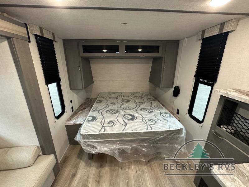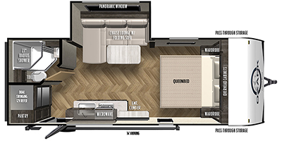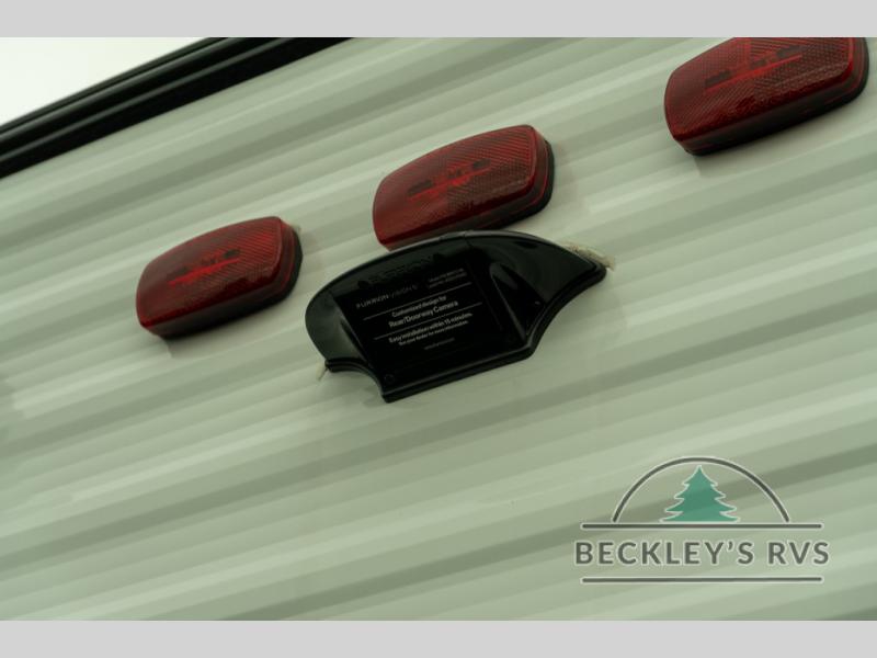 Start camping in this well-equipped travel trailer! The compact kitchen has everything you need to prepare your best home cooked meals and you can enjoy them at the convertible chaise lounge with a folding sofa and a table. Freshen up each morning in the rear corner bathroom with the corner shower and rest each night on the front queen bed with wardrobes on either side and overhead storage. Rinse the mud off your feet with the exterior hot/cold shower to be sure you do not track it all throughout the inside. Don't leave any of your outdoor gear behind; simply store it in the exterior full pass-through storage area!