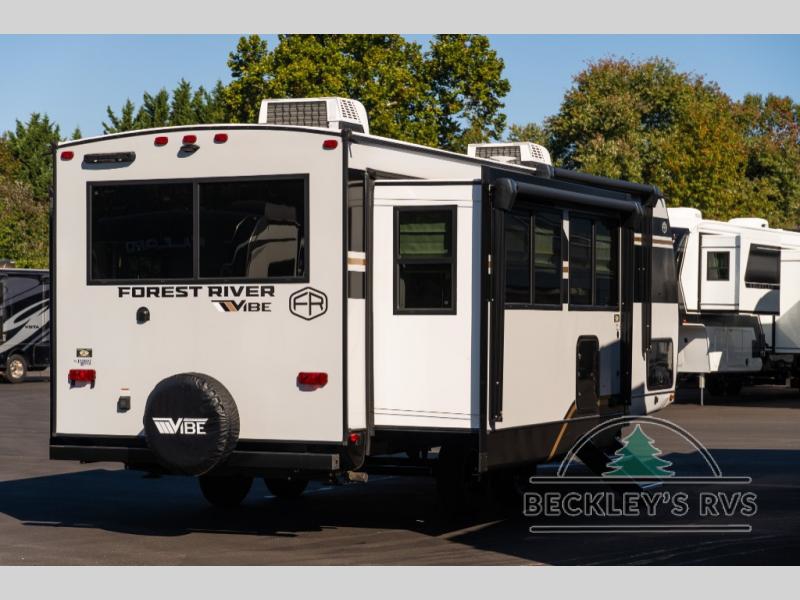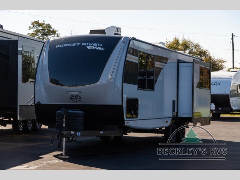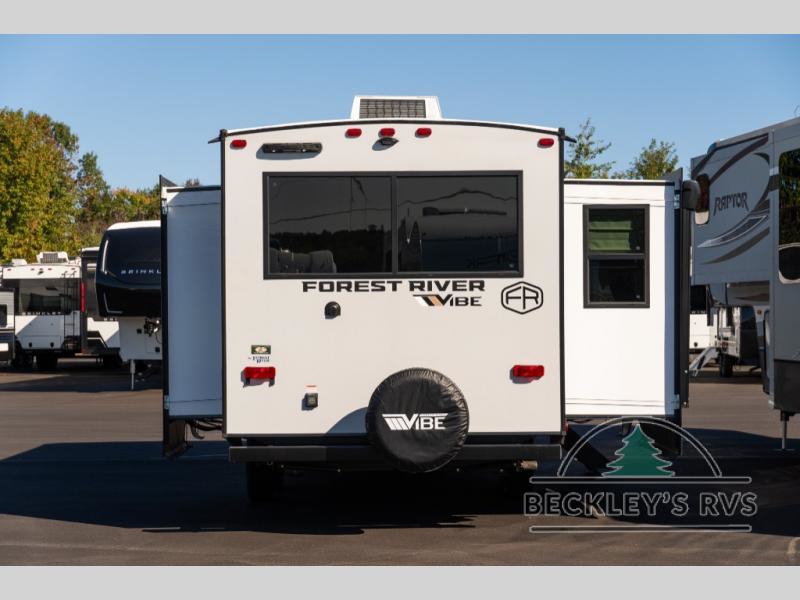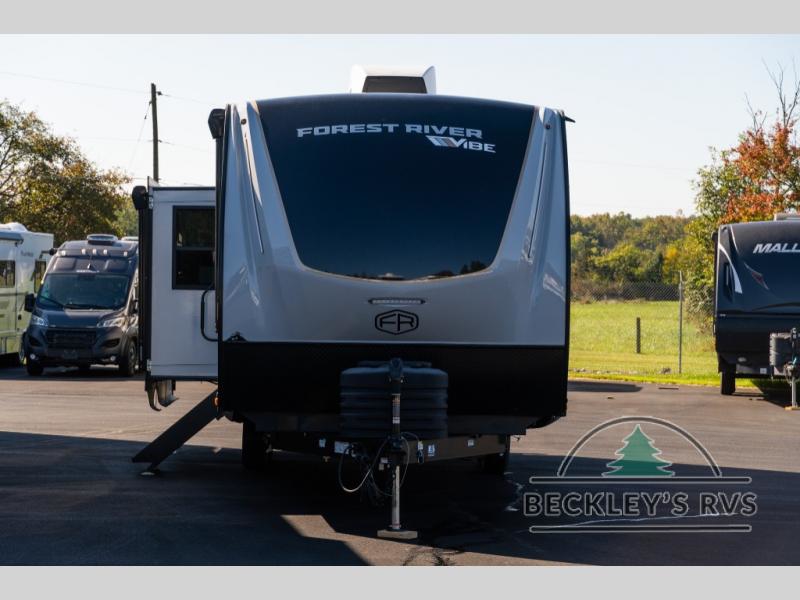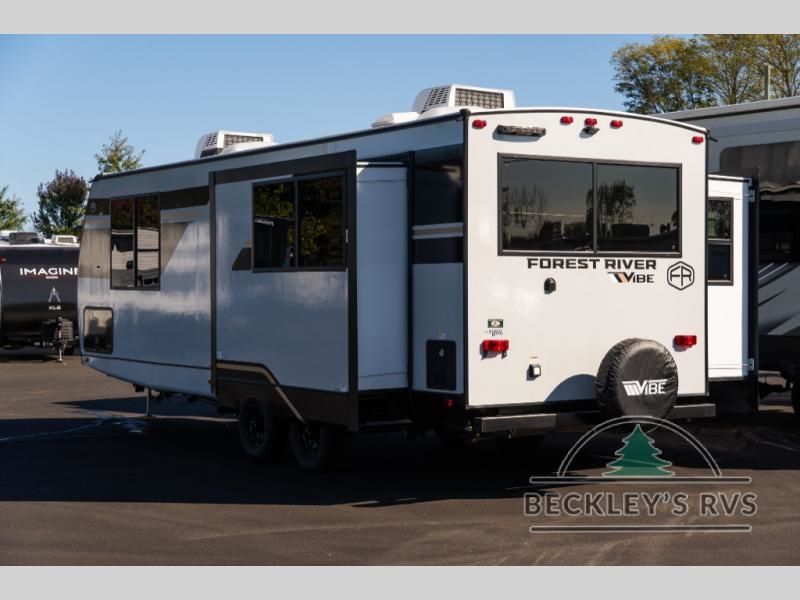 With any Vibe travel trailer by Forest River, you will enjoy comfort at every turn! There is a Norco huck-bolted steel frame, an enclosed underbelly with 12V heating pads, and a PVC roof membrane for added durability. You will also find a universal docking station outside, along with slam latch doors, European style square windows, and an automotive painted front cap. Head inside to enjoy the premium residential-style furniture, decorative window treatments, privacy shades in the living room and bedroom, and many more comforts!