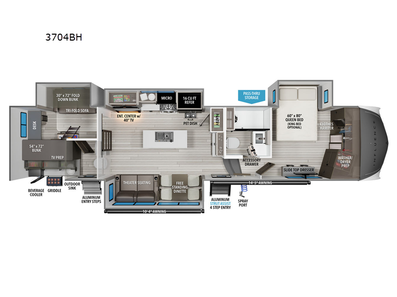Grand Design Influence fifth wheel 3704BH highlights: