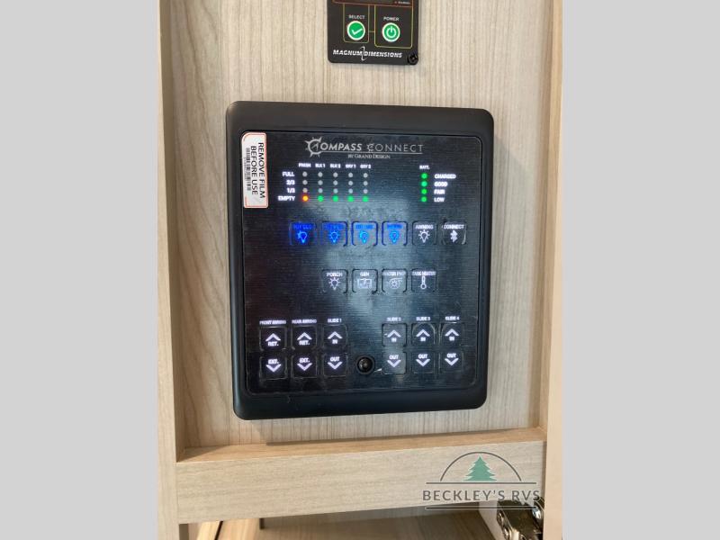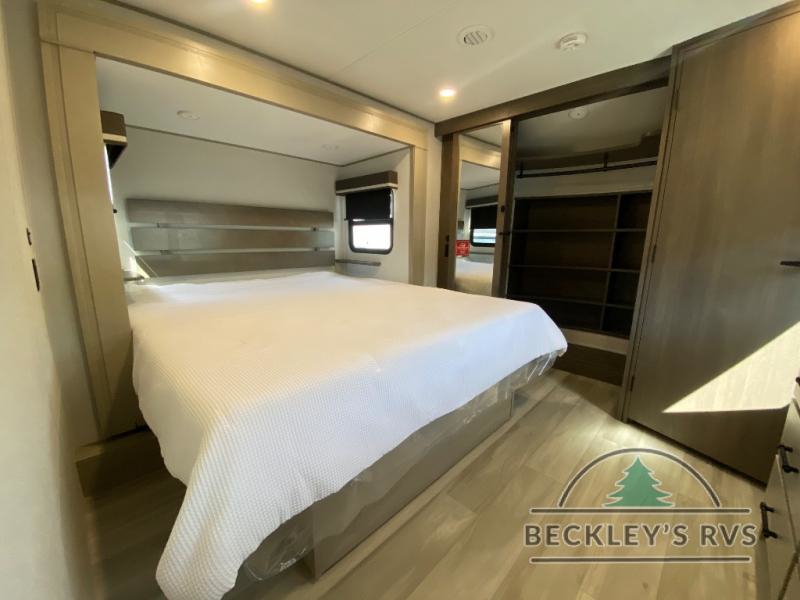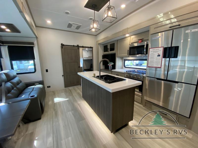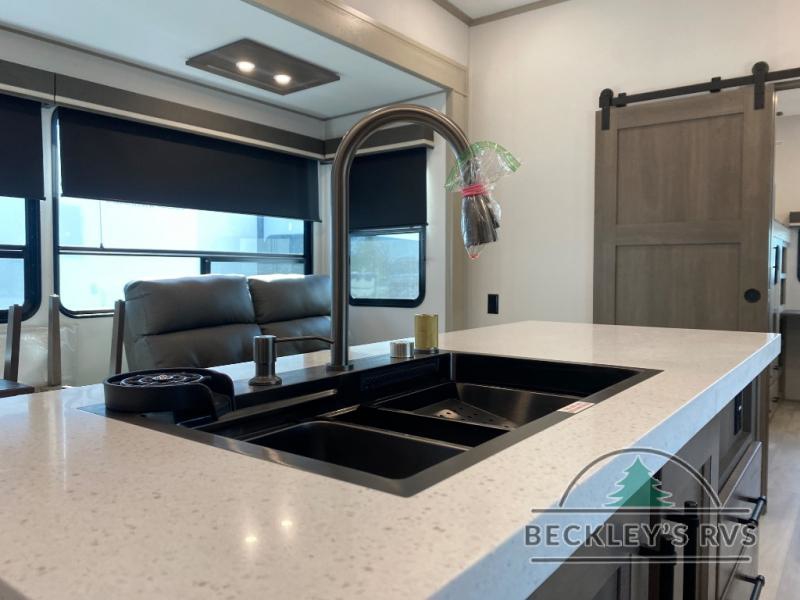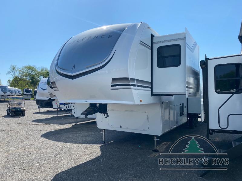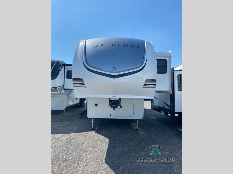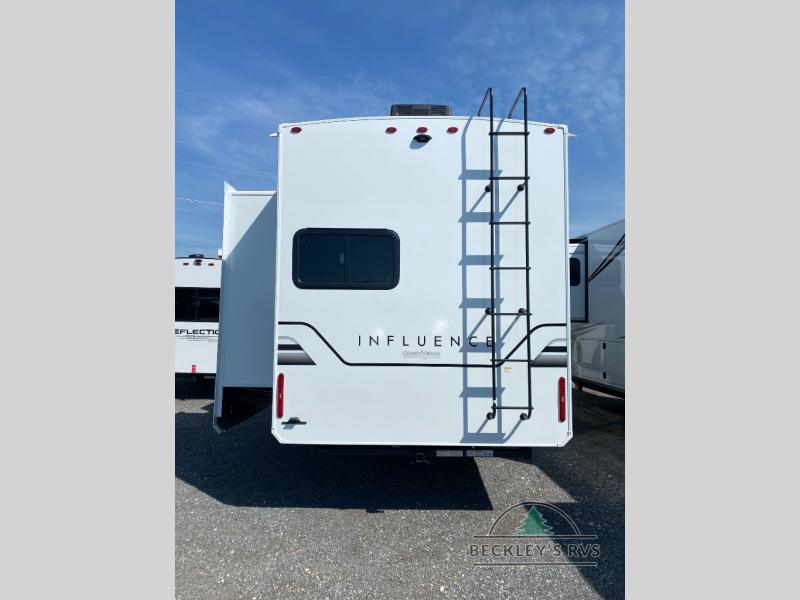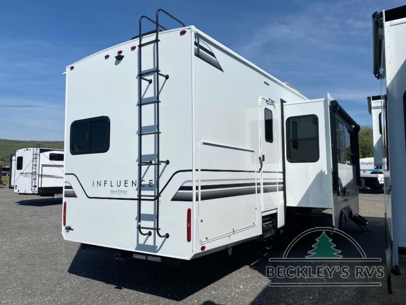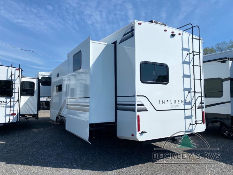 Any Grand Design Influence fifth wheel features five-sided aluminum cage construction with a walk-on roof and a fully enclosed underbelly with heated tanks and storage for all weather camping. For peace of mind, the MORryde CRE3000 Suspension system will provide safe and smooth towing, and the 101" widebody construction offers all the room you need and that is before multiple slides are fully engaged. You will appreciate the Keyed-Alike locks, slam-latch baggage doors with magnetic door catches, exterior security light, and SolidStep entry steps. On the inside, Congoleum flooring, premium roller shades for privacy, a hallway handrail for safety, and nightstands with USB ports to keep all of your electronics fully charged. You will also love the On Demand tankless water heater when showering, plus the added heat and ambiance from an electric fireplace, and so much more!