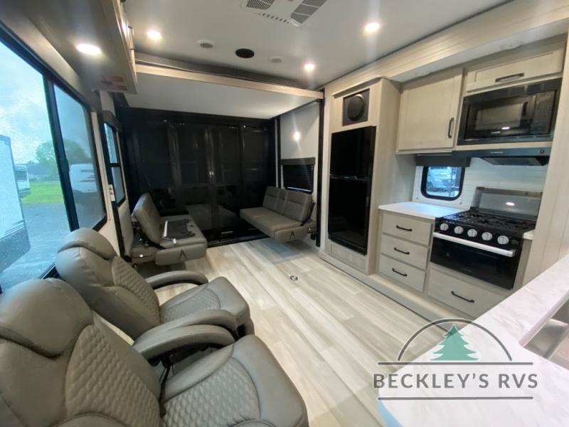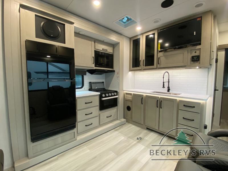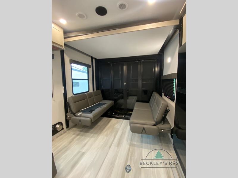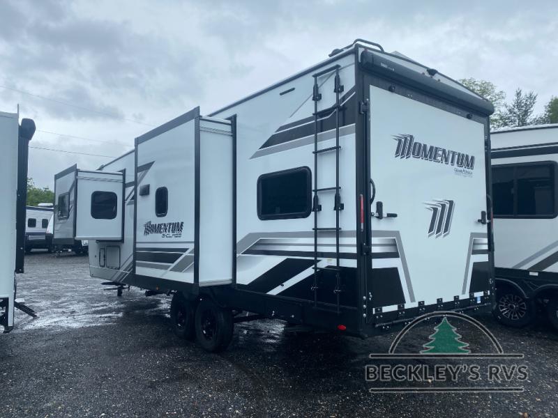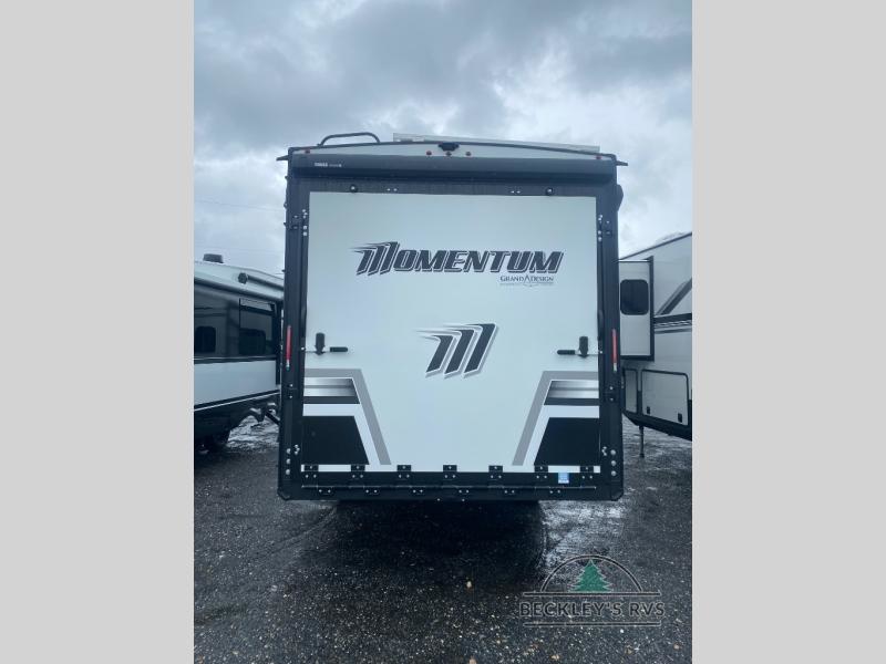 Are you looking for adventure and fun? The Momentum G-Class toy hauler by Grand Design will help you find it! You can explore during any season you choose with the Insulation Package that includes a heated and enclosed underbelly with suspended tanks, a high-capacity furnace, a moisture barrier floor enclosure, and cabinet-mounted heat ducts. Each model includes a fuel station with an interior and exterior gauge, a dovetail rear rend, and 2,500-LB tie-downs anchored into the chassis. Throughout the Momentum G-Class interior, you'll enjoy many comfortable features like large panoramic windows, a shower skylight, USB chargers in the bedroom, and residential cabinetry.