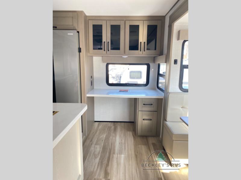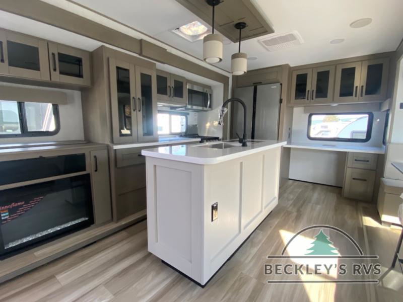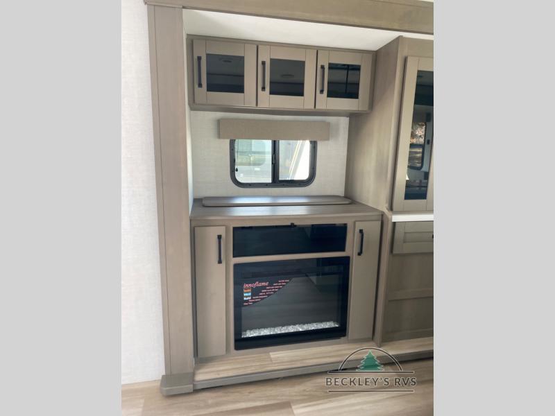 Enjoy a home away from home with this travel trailer! The chef will enjoy cooking either indoors in the rear kitchen with the kitchen island, hutch, and three burner cooktop, or outdoors with the outside griddle and outside 1.6 cu. ft. refrigerator to drink a cold beverage while grilling burgers. If mother nature rains on your parade then you can head indoors and either play games at the booth dinette or relax on the theater seating across from the entertainment center with a 40" TV and fireplace. Rinse the sand out of your hair in the full bathroom with the 30" x 36" shower then head to the front private bedroom and lay down on the queen bed slide which can be replace for an optional king bed. Keep your clothes clean with the prepped washer and dryer area and watch the big game outdoors with the coax TV hookup!