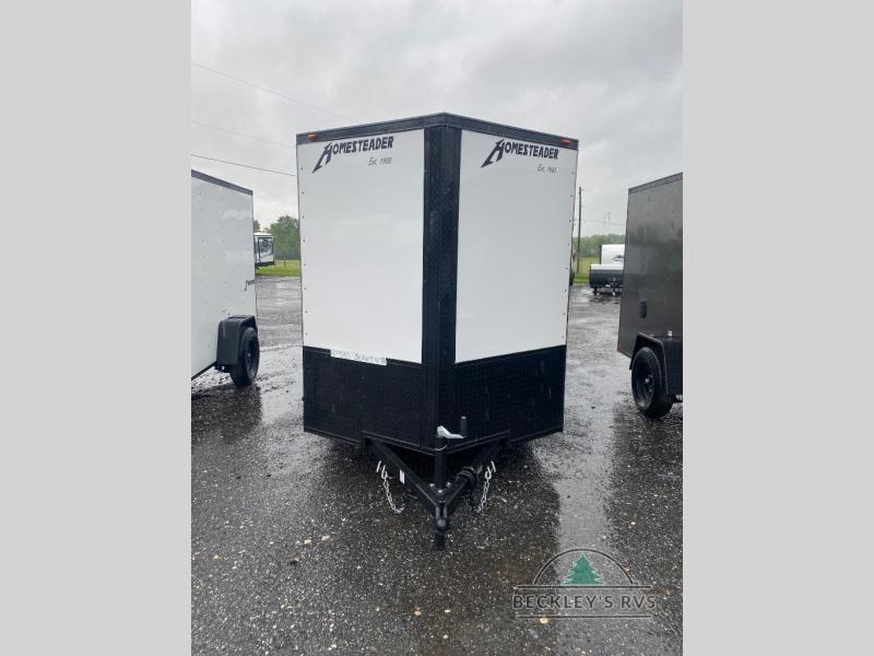 In any Homesteader Trailers Intrepid cargo trailer, you will find an exciting series that is packed full of standard features that are certain to turn your head! Some of the standard features include: a 2' V-nose with an ATP point, an aluminum exterior with baked enamel finish, and a one-piece aluminum roof. Whether they are used for a small business, a motorcycle enthusiast, a flea marketer, or a wide array of other needs, the Intrepid is ready for any occupation. Each unit also has an interior light, a 3/4" exterior grade plywood floor, and a 3/8" plywood interior wall liner.