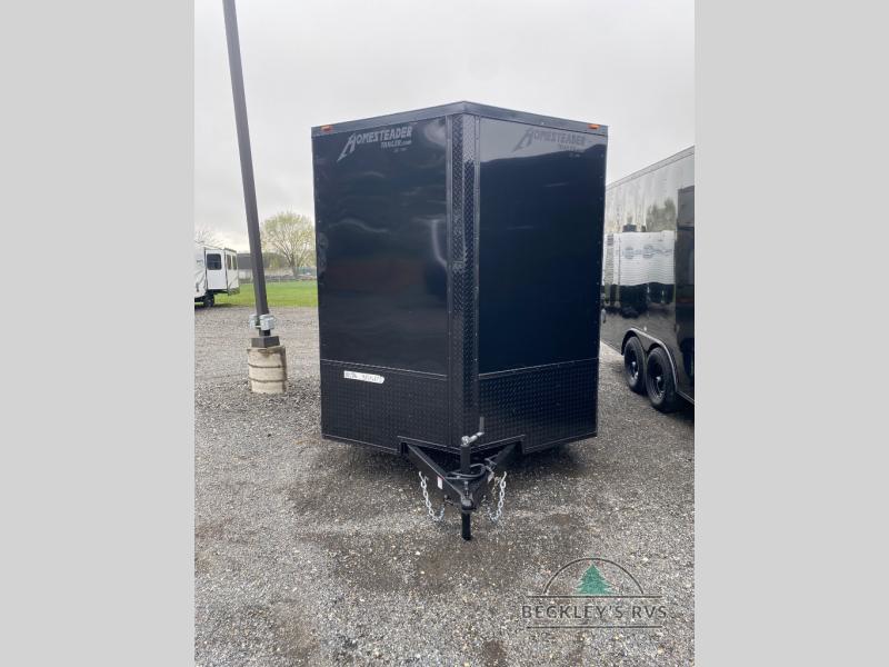 In any Homesteader Trailers Intrepid cargo trailer, you will find an exciting series that is packed full of standard features that are certain to turn your head! Some of the standard features include: a 2' V-nose with an ATP point, an aluminum exterior with baked enamel finish, and a one-piece aluminum roof. Whether they are used for a small business, a motorcycle enthusiast, a flea marketer, or a wide array of other needs, the Intrepid is ready for any occupation. Each unit also has an interior light, a 3/4" exterior grade plywood floor, and a 3/8" plywood interior wall liner.