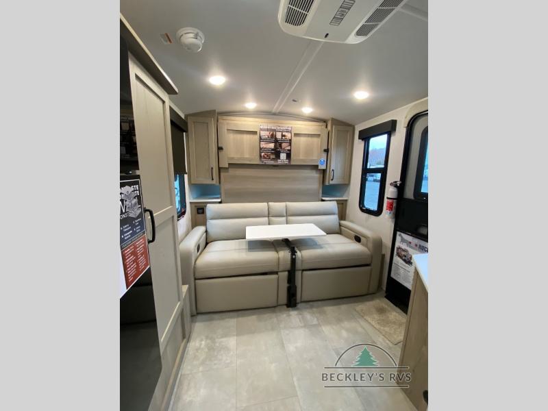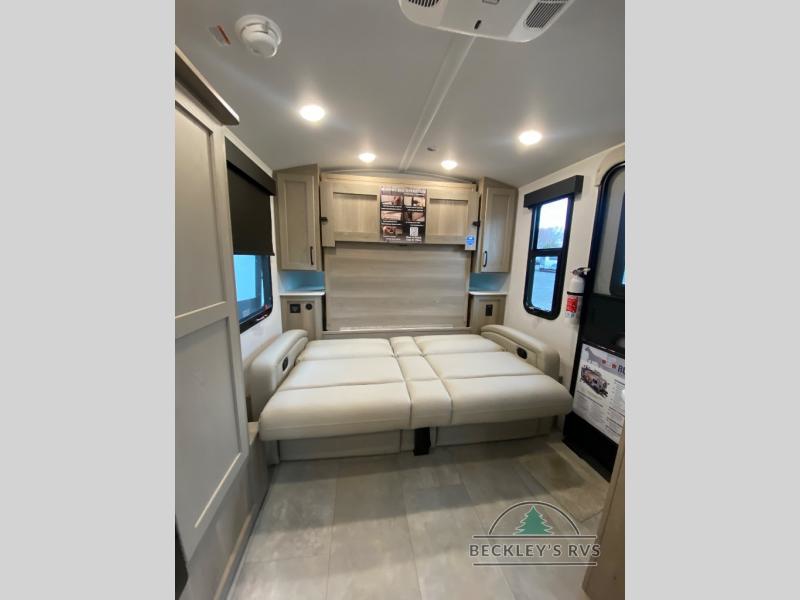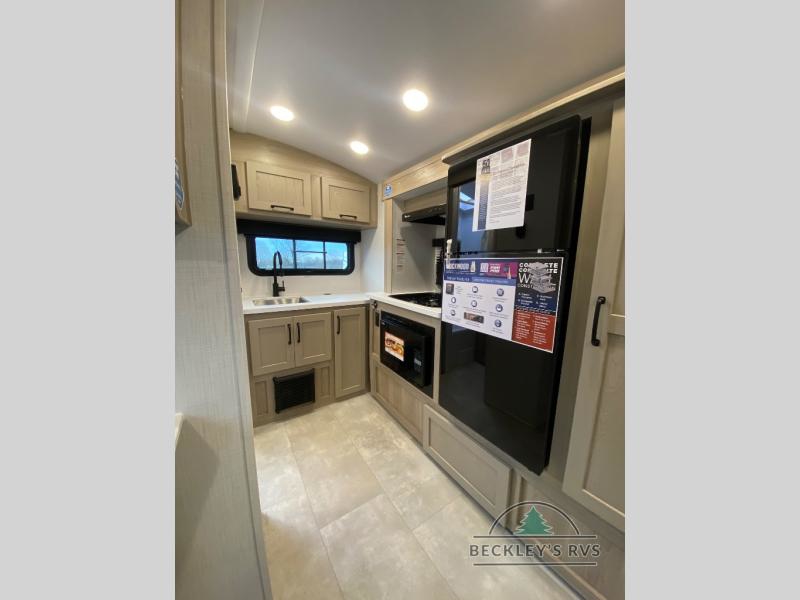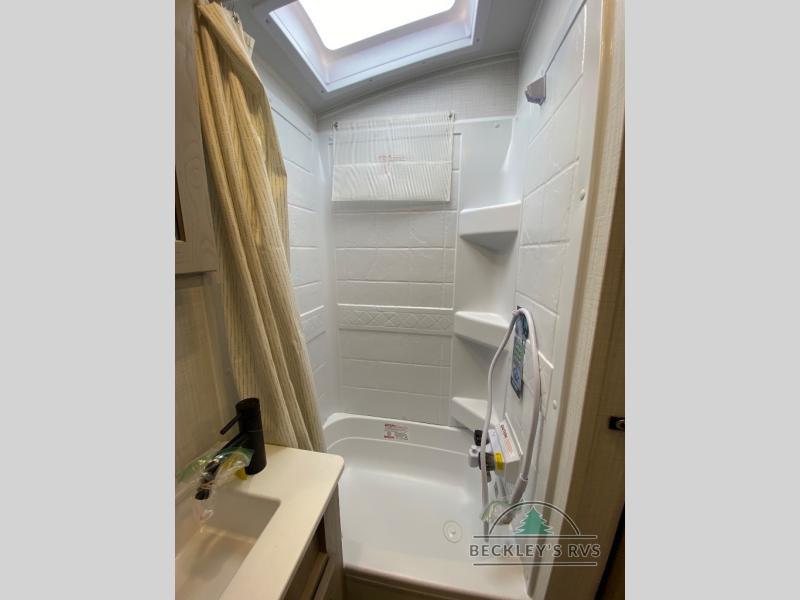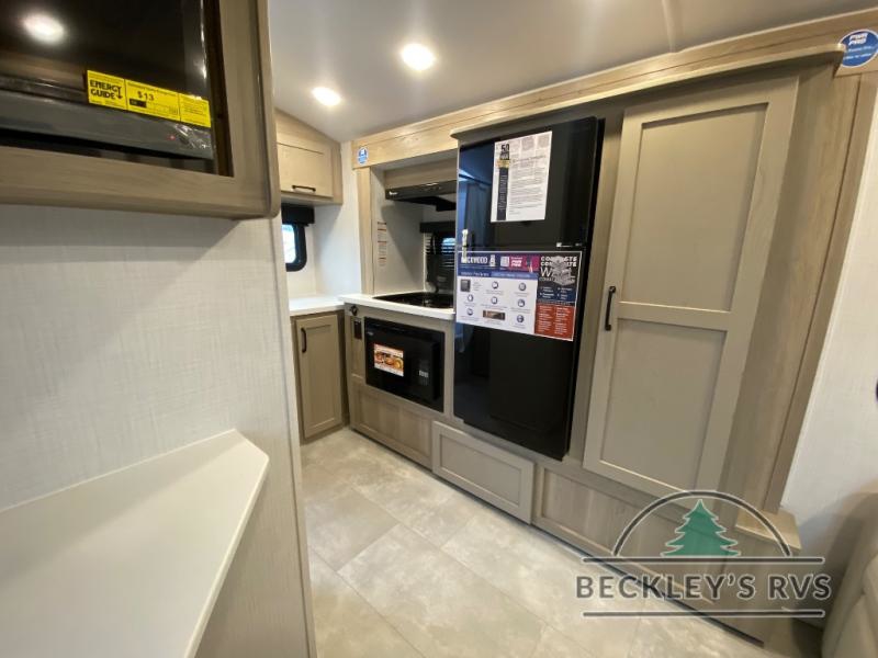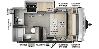 Pack your bags and head to your local state park in this travel trailer! You will love the extra space you have thanks to the kitchen slide out, and the jack knife sofa can fold away at night so you can sleep on the Murphy bed! This model includes a 32" 12V TV to keep you entertained on those rainy days, and the full bath will let you get cleaned up if you decide to hike despite the weather. There will be plenty of storage space for your belongings and gear since there is a pass-through storage and additional exterior storage, and don't overlook the exterior griddle for breakfast outdoors!