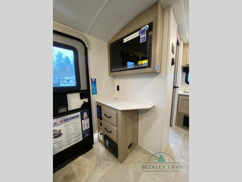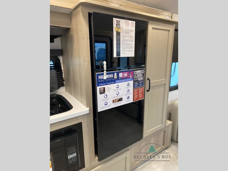 With any Rockwood GEO Pro travel trailer by Forest River you will enjoy easy towing, durable construction, and off-road capabilities with larger 15" tires and a lift kit! Each model is constructed with complete composite wall construction for added strength and durability, and the torsion axle, Rubber-Ryde suspension will make towing easier than ever. Inside, you'll find sleek roller shades for added privacy, a 12V refrigerator and a microwave, plus a 20,000 BTU furnace to keep you warm during the colder camping months.