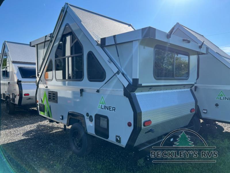 With any Aliner Classic A-frame folding pop-up camper you will find Azdel lightweight, composite interior wall and ceiling panels for added durability and strength. The additional corner windows provide panoramic views, and the hardwood cabinet doors will give these campers a more at-home feel. Four stabilizer jacks come standard, along with an LP connection, an exterior outlet, and an outside shower. It's no wonder these campers are named classic! Choose your model and start camping today!