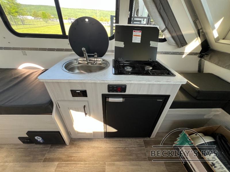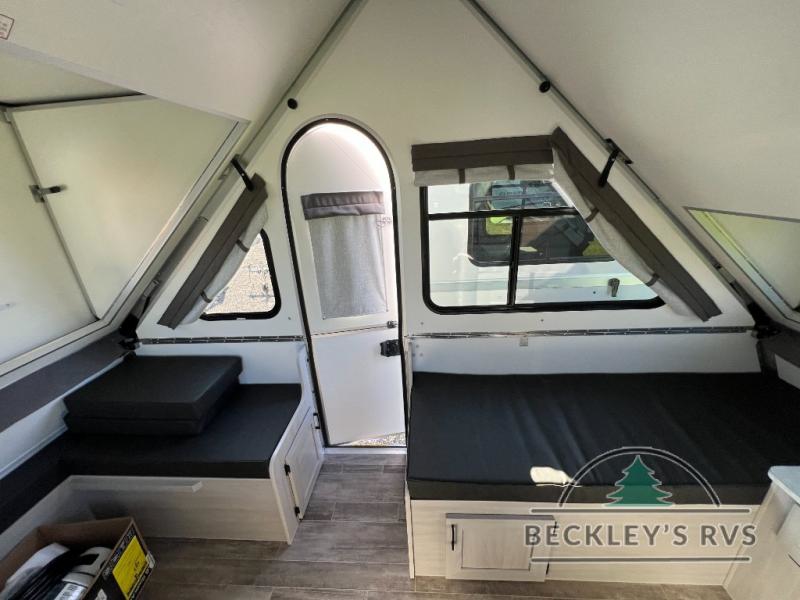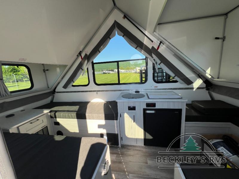 If you enjoy camping with friends or you need your own space at night, this Twin Bed model will do the trick! While two campers take the rear twin beds, the front booth dinette can convert to a 30" x 76" bed for an extra guest, and in the morning you can convert it back to dining space. Whip up breakfast on the two burner stove, or use the convenient microwave oven. There is also a sink to clean up your dishes plus a 3.1 cu. ft. 12V refrigerator to put milk and eggs back in. Don't let this cute A-Frame slip away!