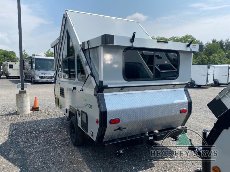 With any ALiner Classic A-frame folding pop-up camper you will find Azdel lightweight, composite interior wall and ceiling panels for added durability and strength. The additional corner windows provide panoramic views, and the hardwood cabinet doors will give these campers a more at-home feel. Four stabilizer jacks come standard, along with an LP connection, an exterior outlet, and an outside shower. It's no wonder these campers are named classic! Choose your model and start camping today!