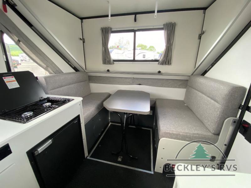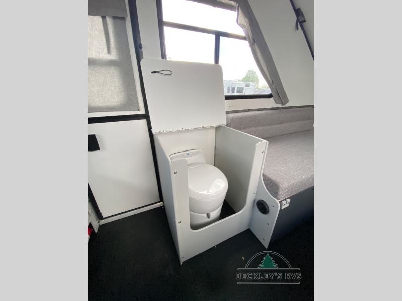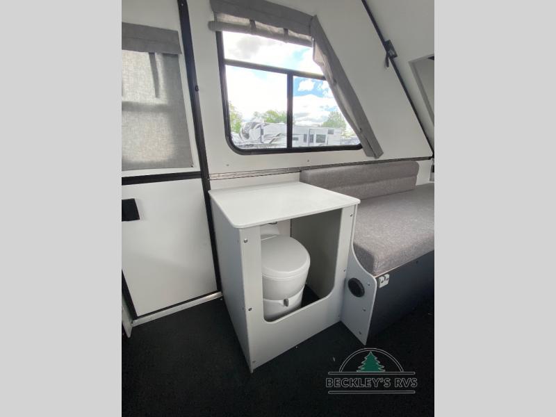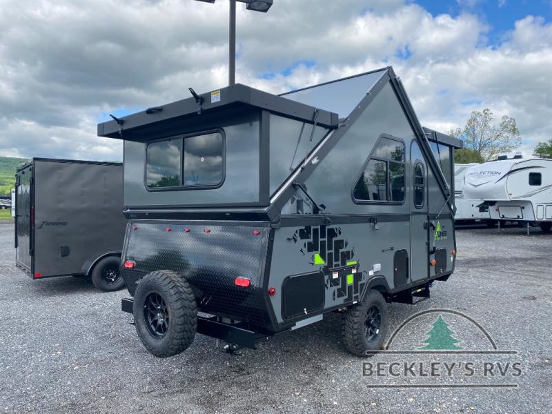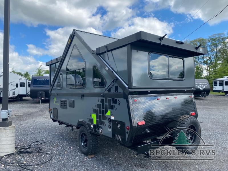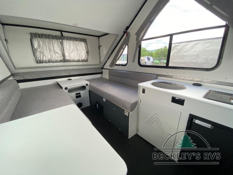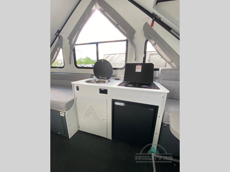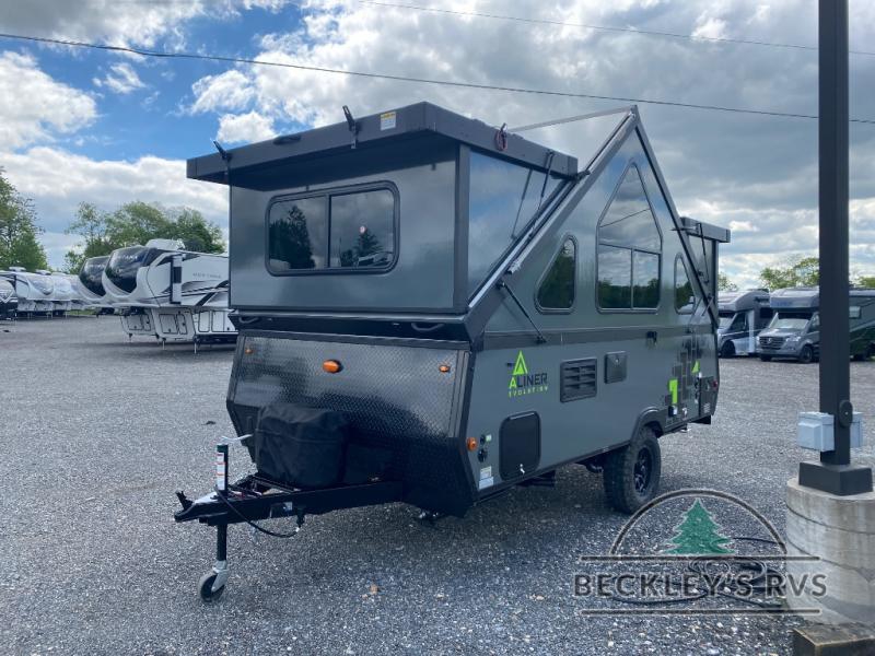 The Evolution A-frame camper by Aliner is coming to you with residential features and solid construction materials. You'll love the slate gray exterior, and the Azdel composite panels included help prolong the life of your camper. There are 15" off-road tires with graphics package, LED running lights, exterior baggage doors, plus many more exterior conveniences. The Evolution A-Frame camper comes with commercial grade, raised coin polyvinyl flooring, SIMONA BOATBOARD interior cabinets and furniture, and three indoor electrical outlets to name a few interior comforts.