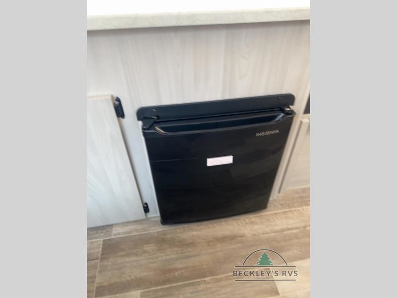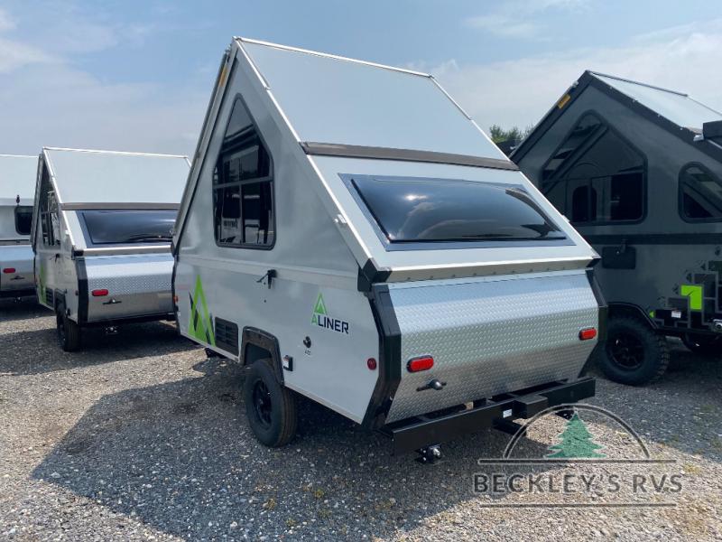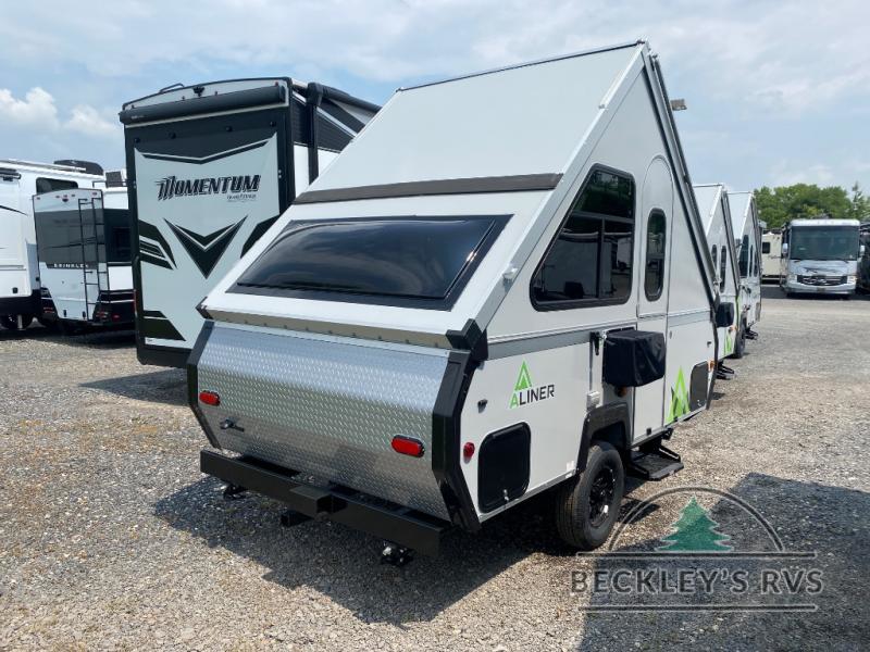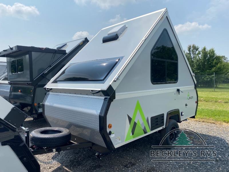 With the Scout A-frame camper by ALiner, there is an E-coated frame with powder coating on the front tongue and bumper, a diamond plate stone guard to protect against road debris, aluminum wheels, and a battery tray. There are vacuum bonded fiberglass panels, an Azdel lightweight, Thermoplastic composite interior wall and ceiling panels, and 10" electric brakes. You will also find a sink inside to wash your hands and dishes, two skylights with night shades and a door window for natural lighting, plus more!